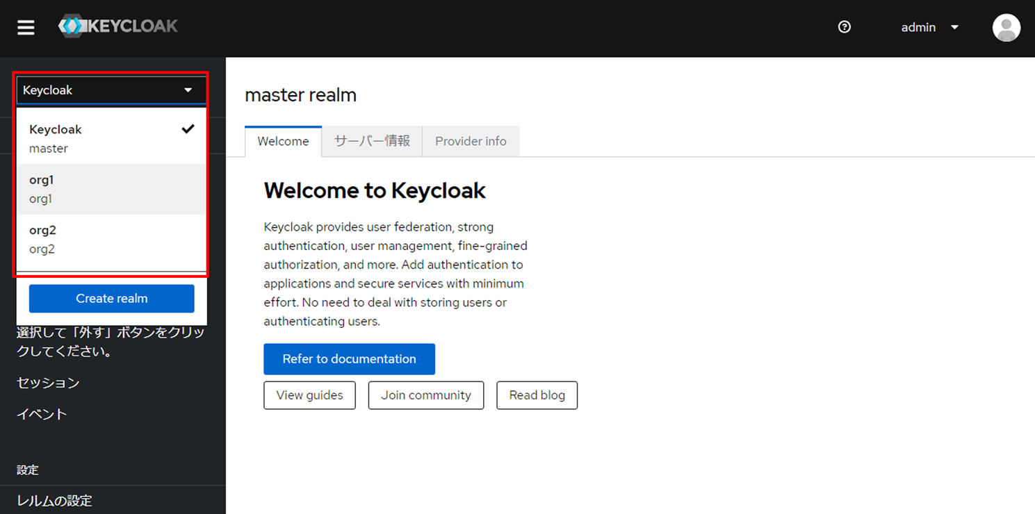 - レルム(オーガナイゼーション)選択設定するレルム(オーガナイゼーション)を選択して作業を進めることができます。