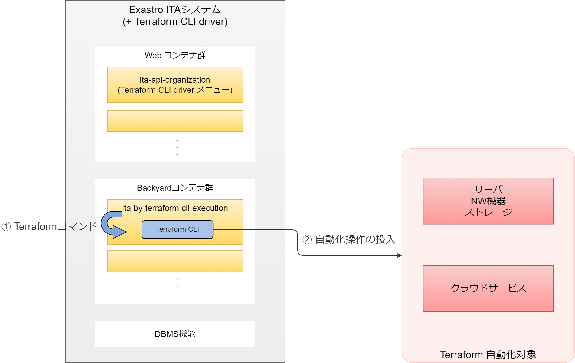 Exastro IT Automation(以下、ITAとも記載する)で Terraform CLI 連携機能 (以下、Terraform CLI driver) として運用する為のシステム構成と環境構築について説明します。