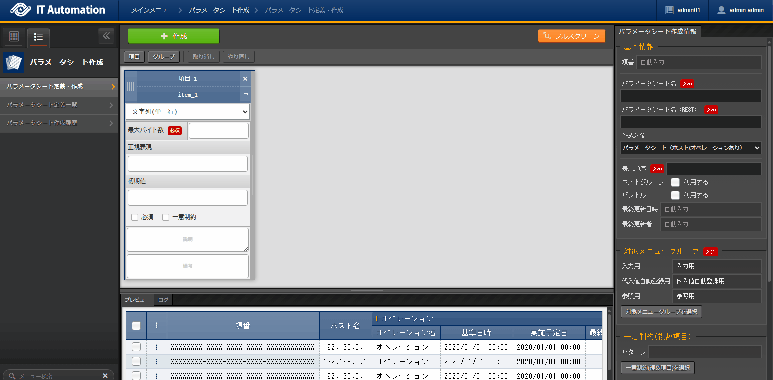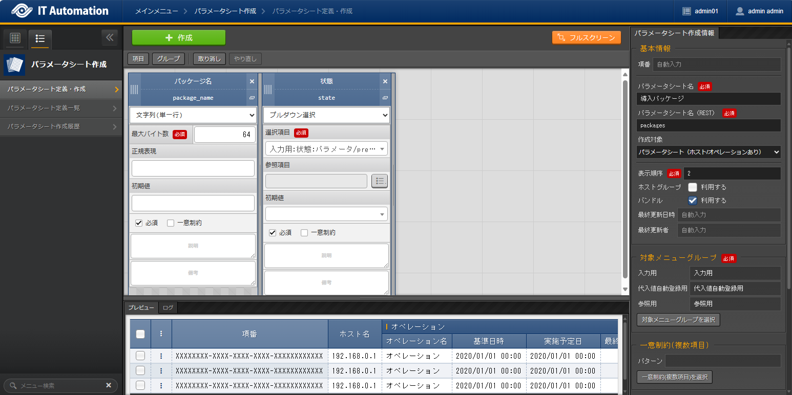 パラメータシート(ホスト/オペレーションあり) |