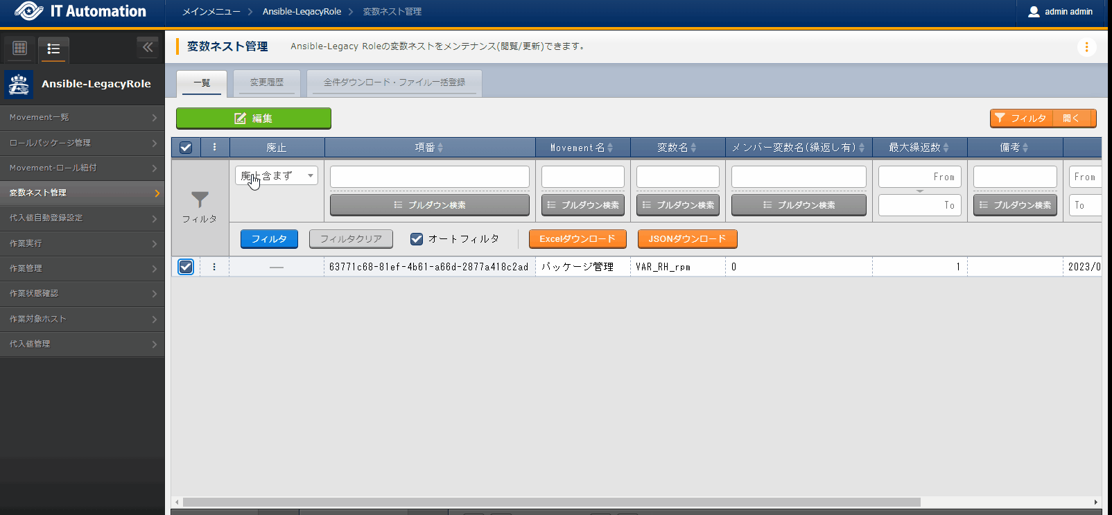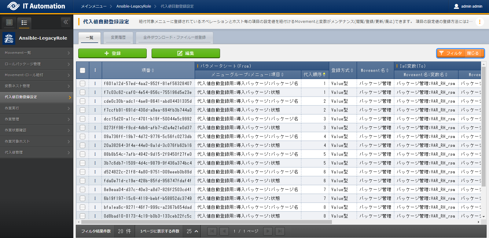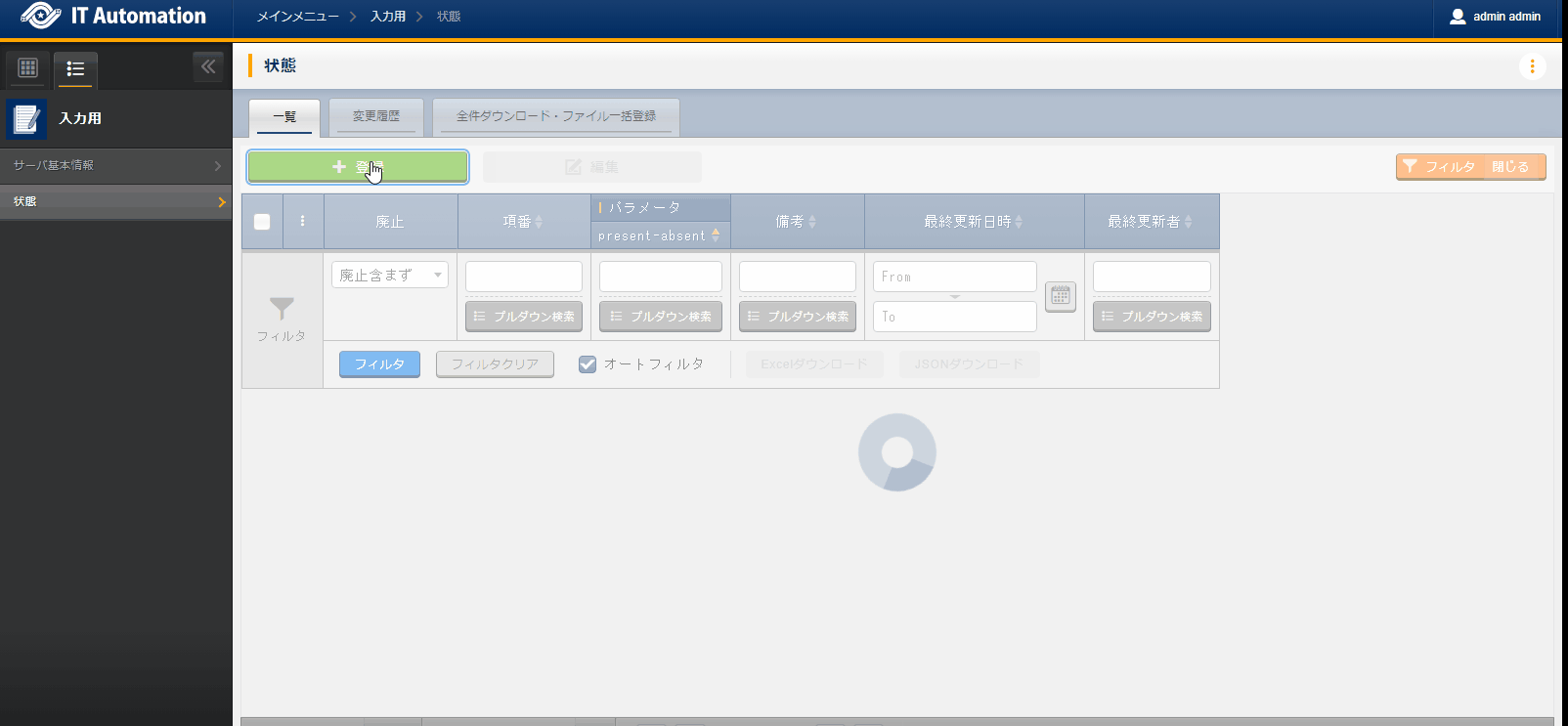 大量のパラメータを設定する場合は、「全件ダウンロード・ファイル一括登録」を利用することでファイルからのデータ登録を行うことが可能です。