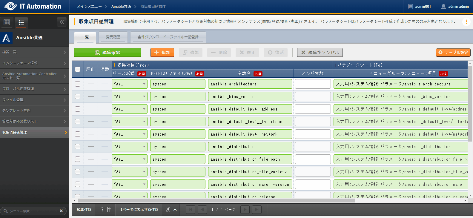 入力用:システム情報:パラメータ/ansible_default_ipv4/address |
