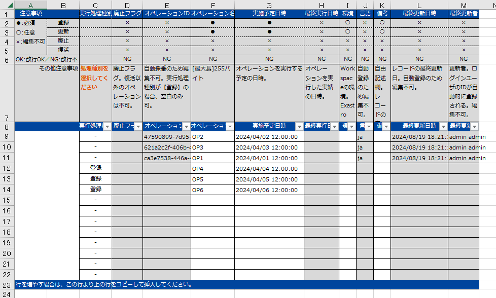 Excel一括インポートの実行¶
