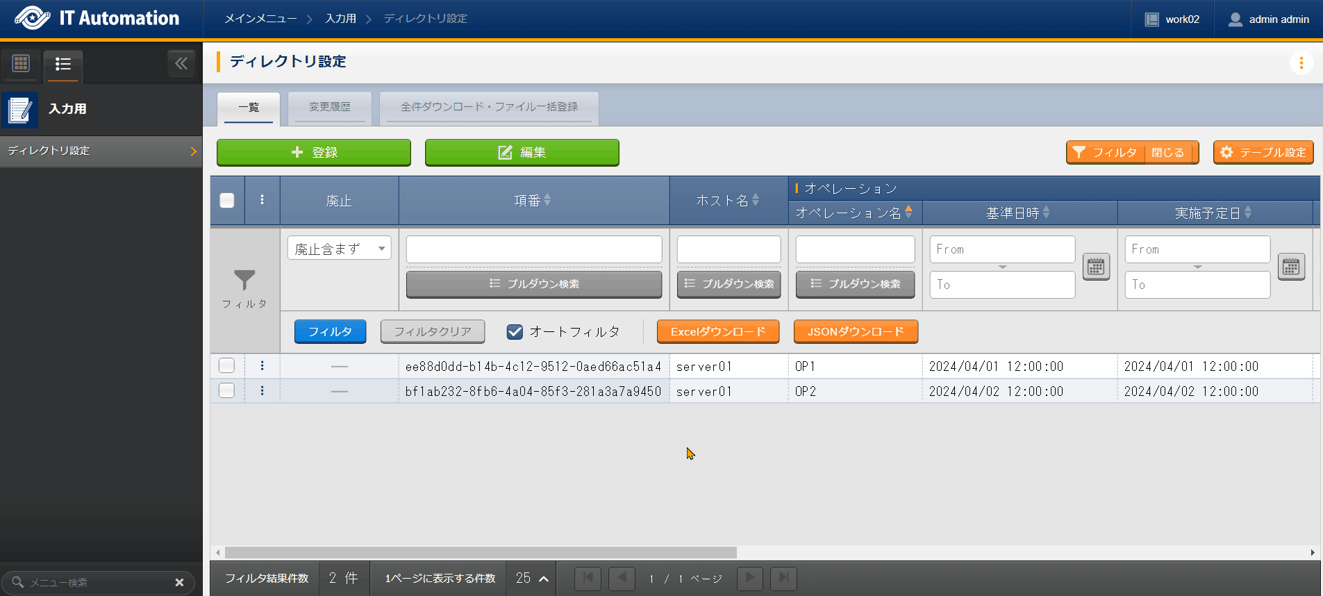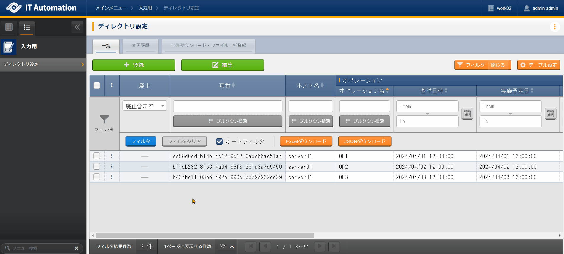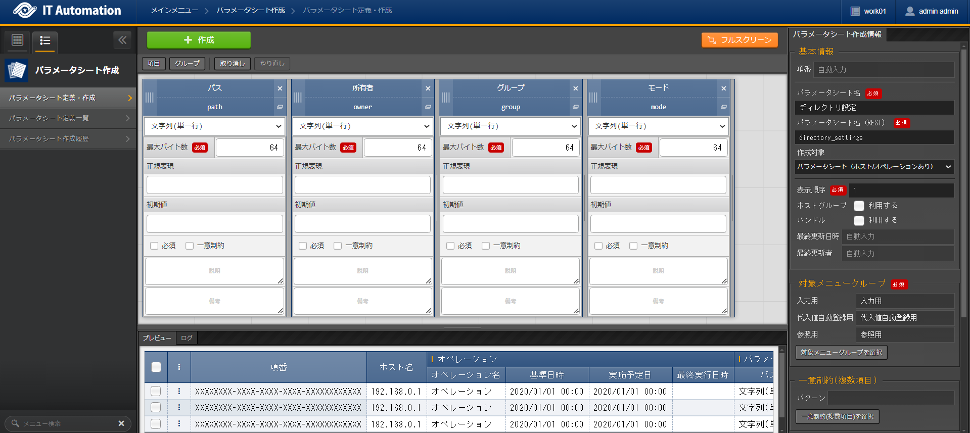 パラメータシート(ホスト/オペレーションあり) |