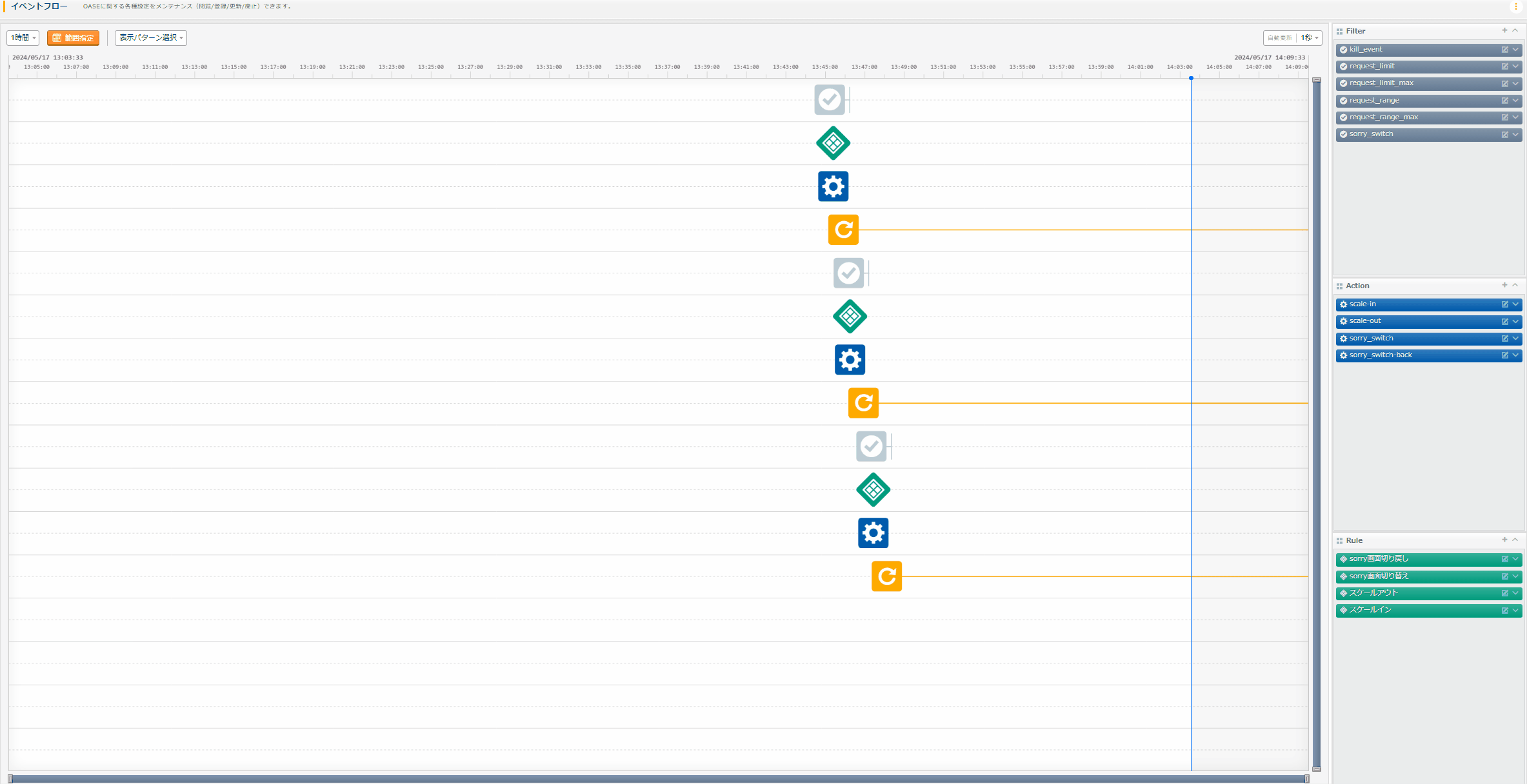 例えば今回のシナリオでは、Sorry画面の切り戻しのときに先行する結論イベントを参照しましたが、スケールインするときも先行するスケールアウトの結論イベントを参照する形で設定するとしましょう。