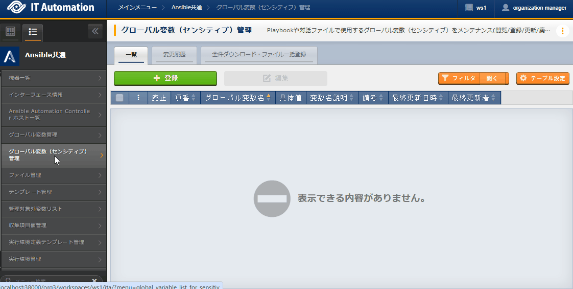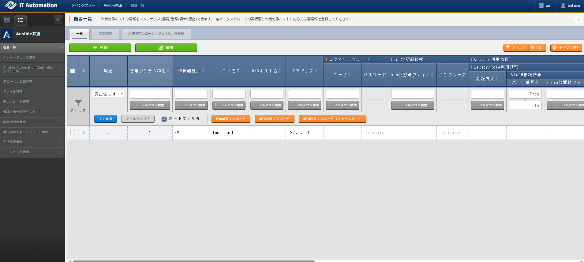 インベントリ リソース名: ita_<区分>_executions_inventory_作業番号_通番 |