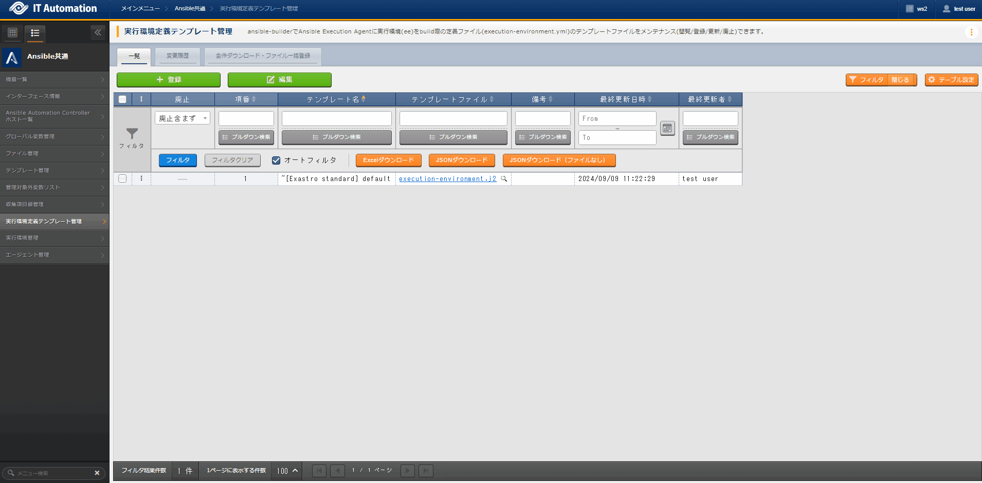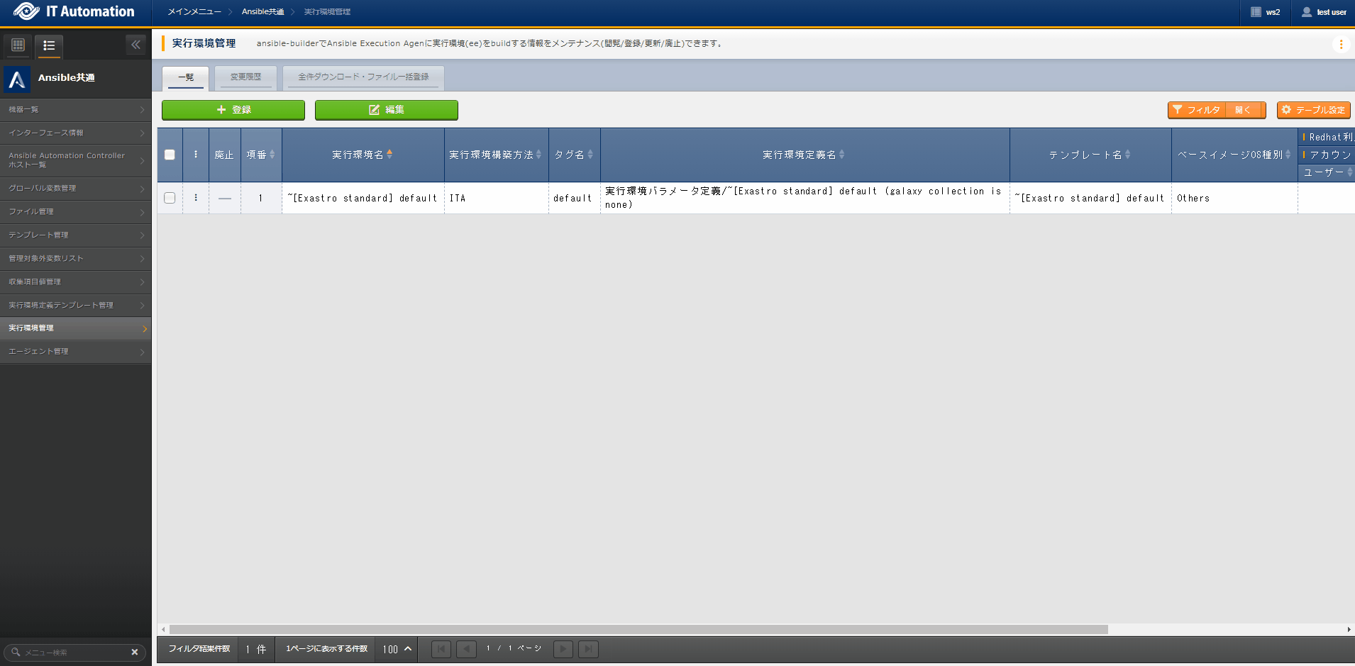 ITA作業用ディレクトリ /var/lib/exastro/ita_<区分>_executions_作業番号 |