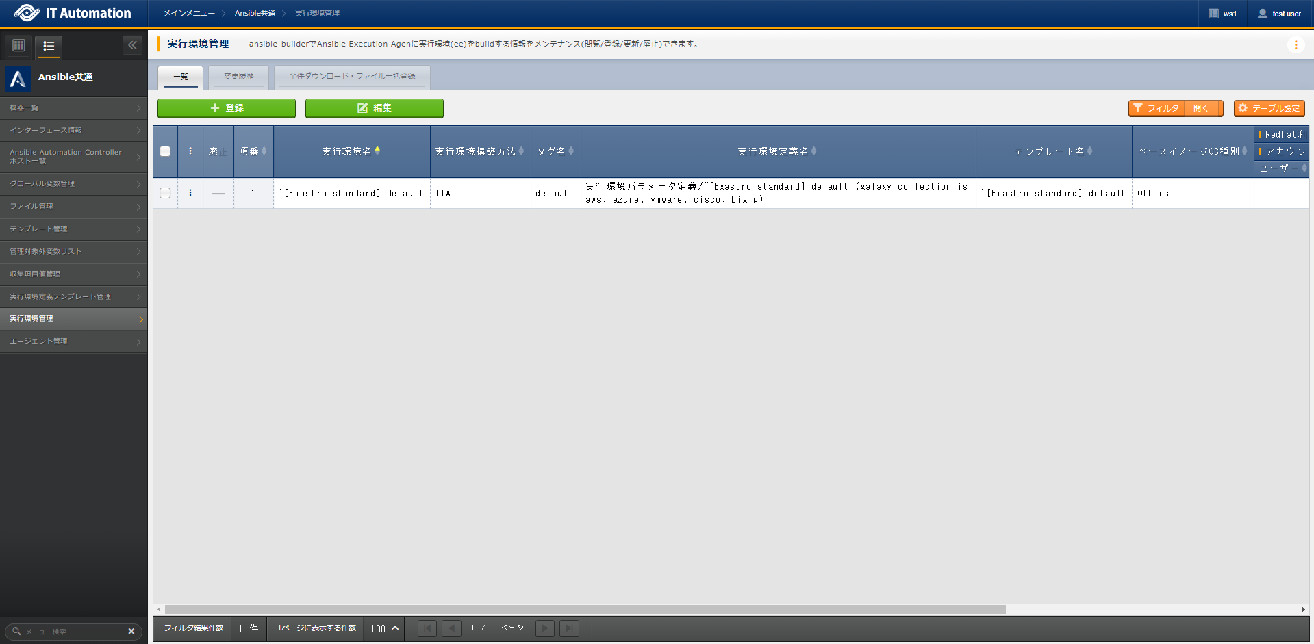 認証情報 リソース名: ita_<区分>_executions_credential_作業番号_通番 ita_<区分>_executions_vault_credential_作業番号 ita_<区分>_executions_git_credential_作業番号 |