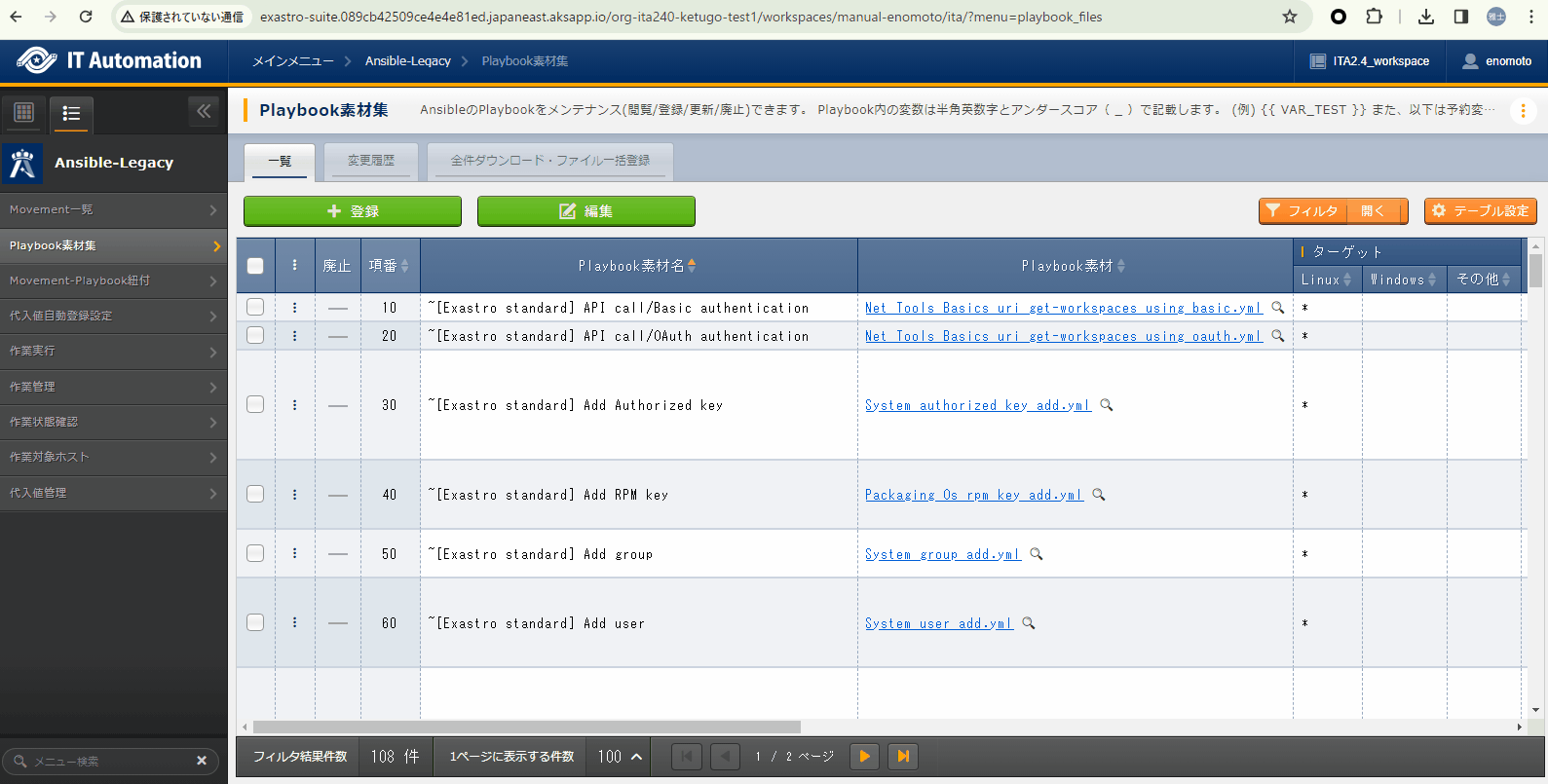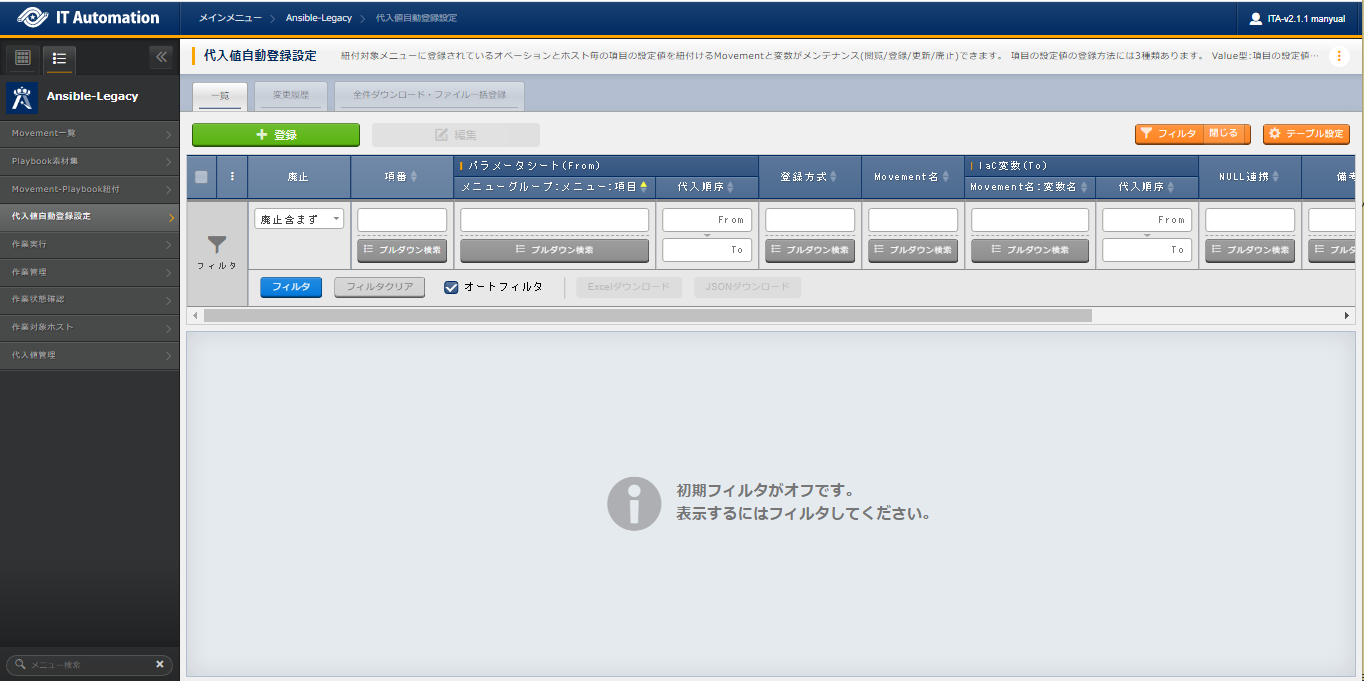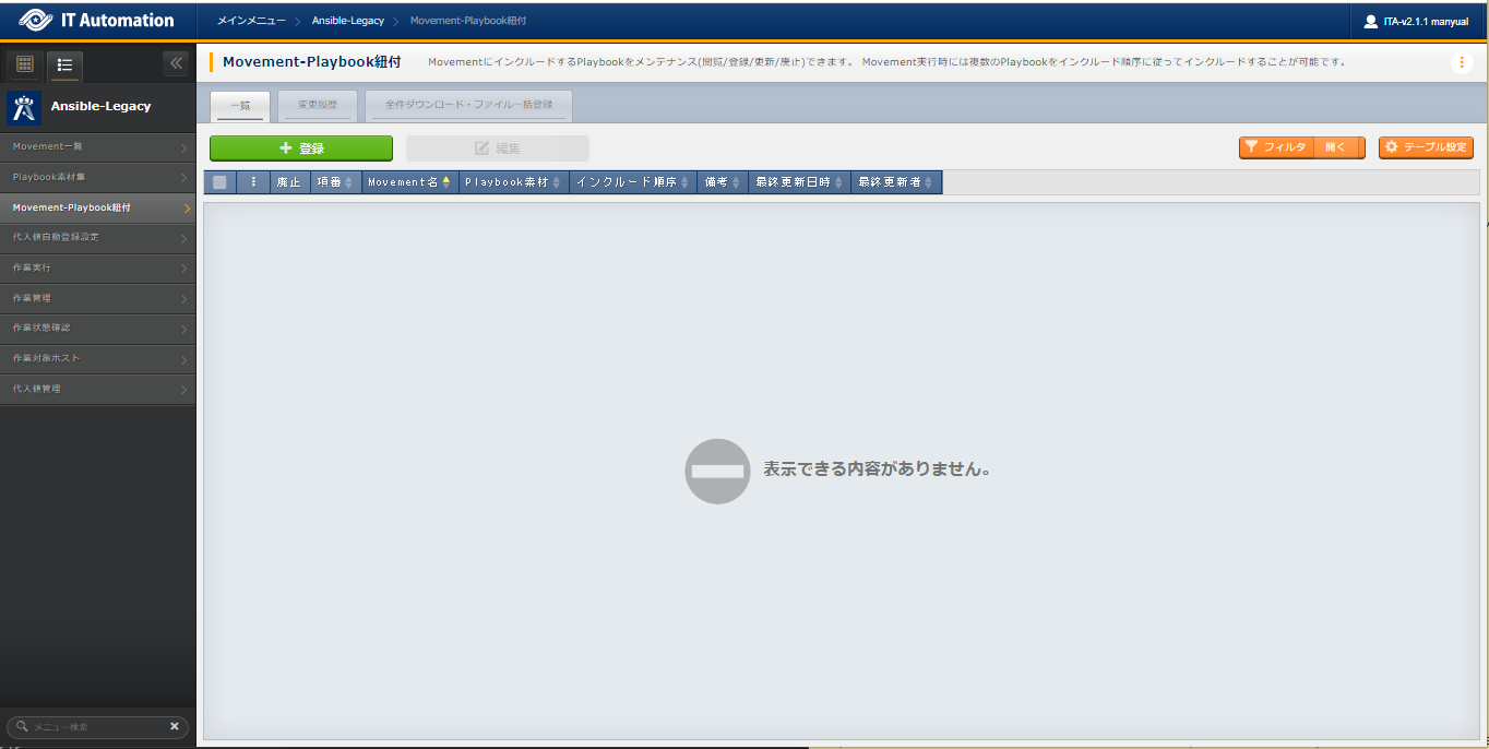 2.5. Ansible-Legacy メニュー操作方法説明¶