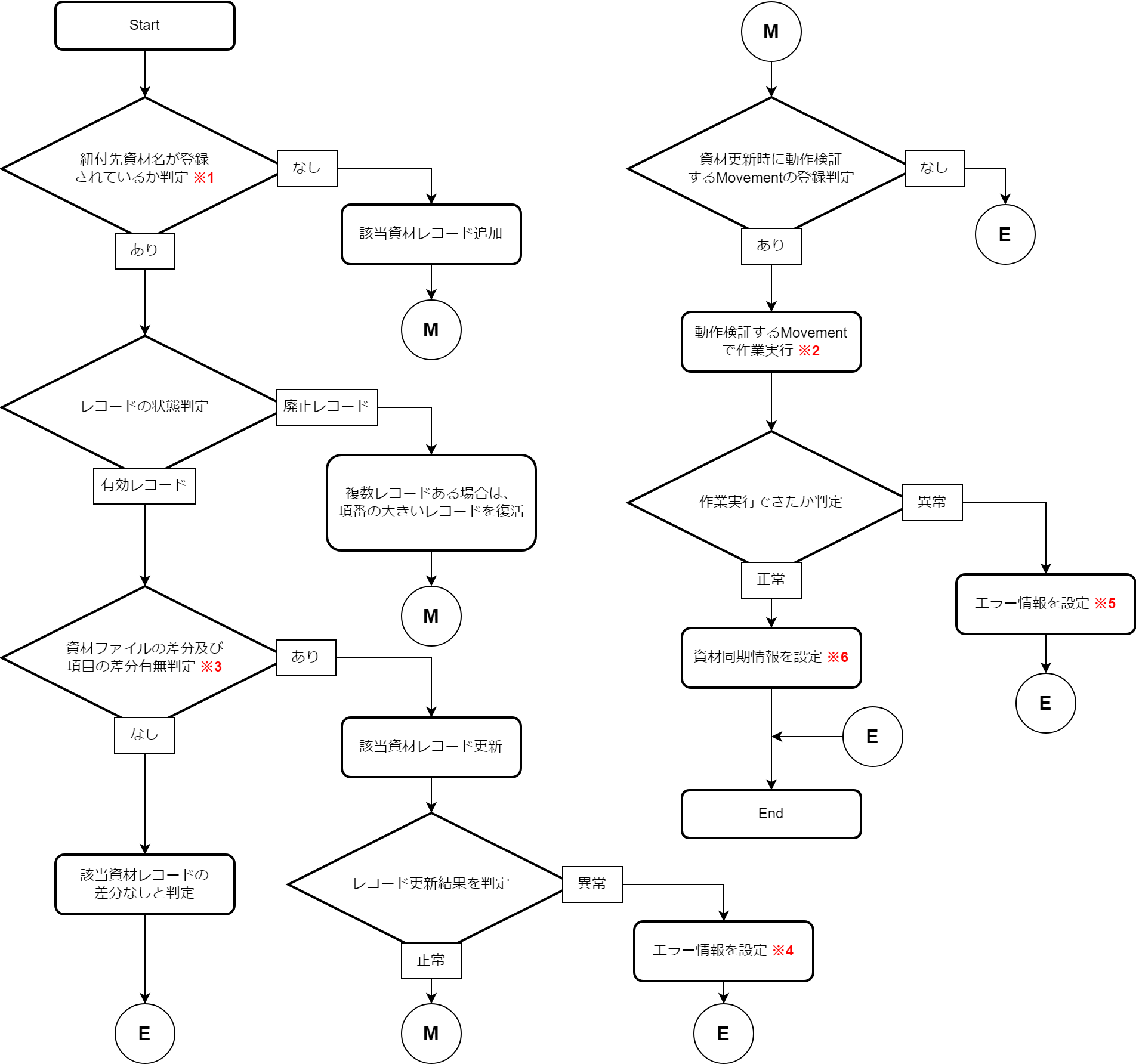 - 自動での資材更新と動作検証の確認紐付元資材が更新される度に、紐付先資材が自動更新されることを確認します。また、オペレーションとMovementを登録している場合に、作業実行が自動で行われることを確認します。詳細は「資材紐付」メニューを参照してください。