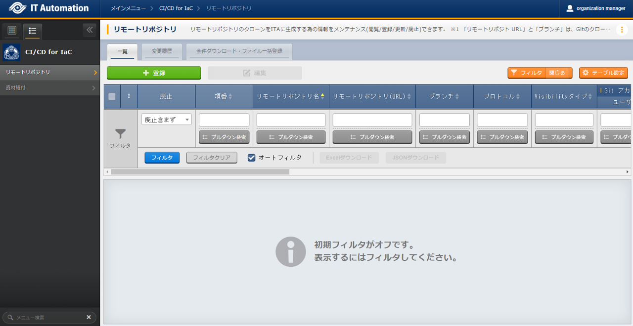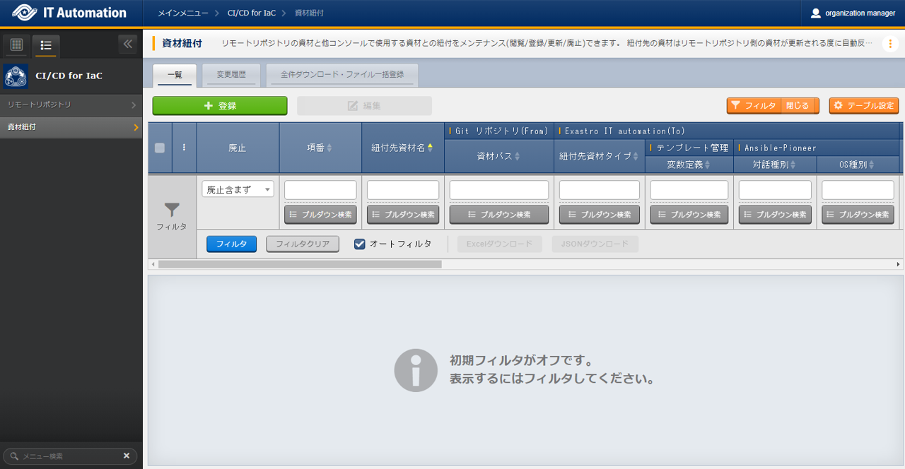 1.6. CI/CD For IaC機能メニュー操作説明¶