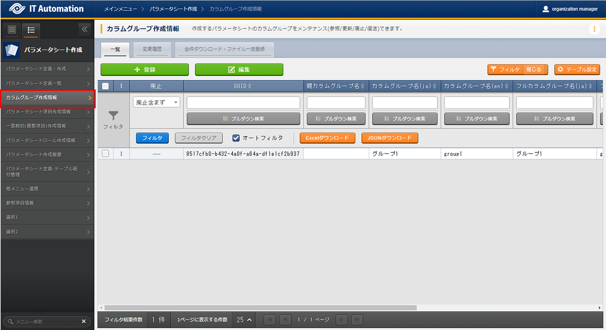 1.4. パラメータシート作成機能のメニューグループ¶