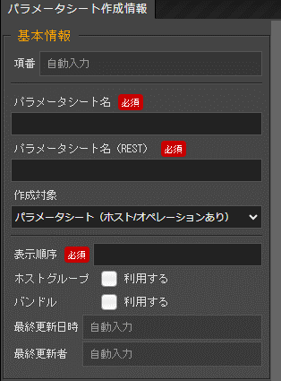 パラメータシート項目作成情報