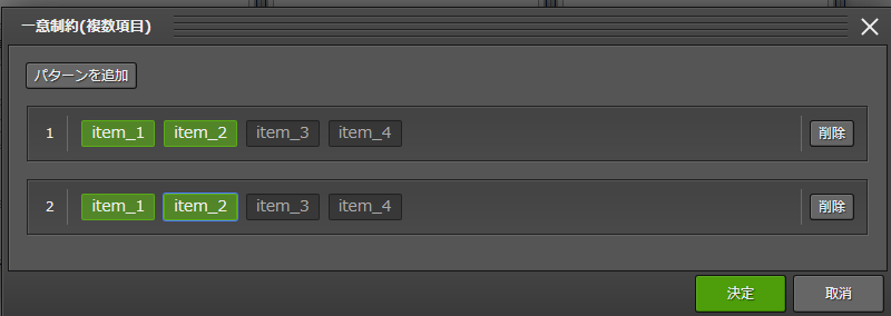 一意制約(複数項目)作成情報