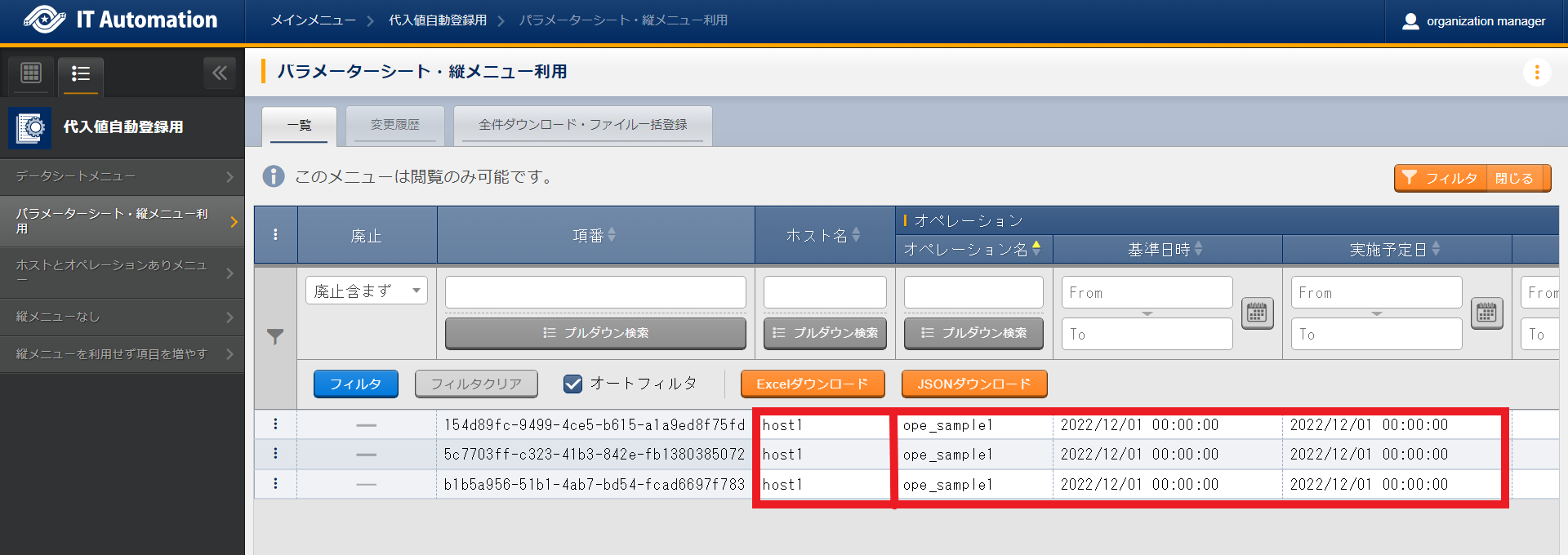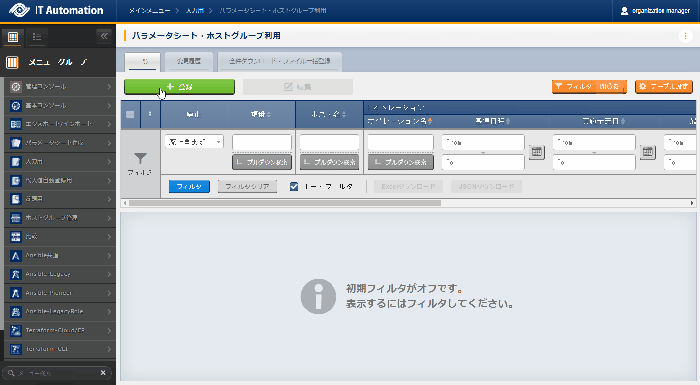 - パラメータシート選択 & 「ホストグループ」利用あり