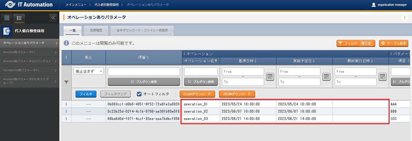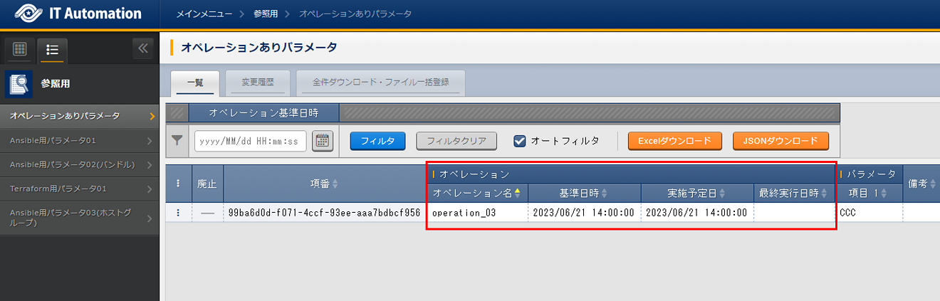 - オペレーションありパラメータシートが「オペレーション」単位で作成されます。