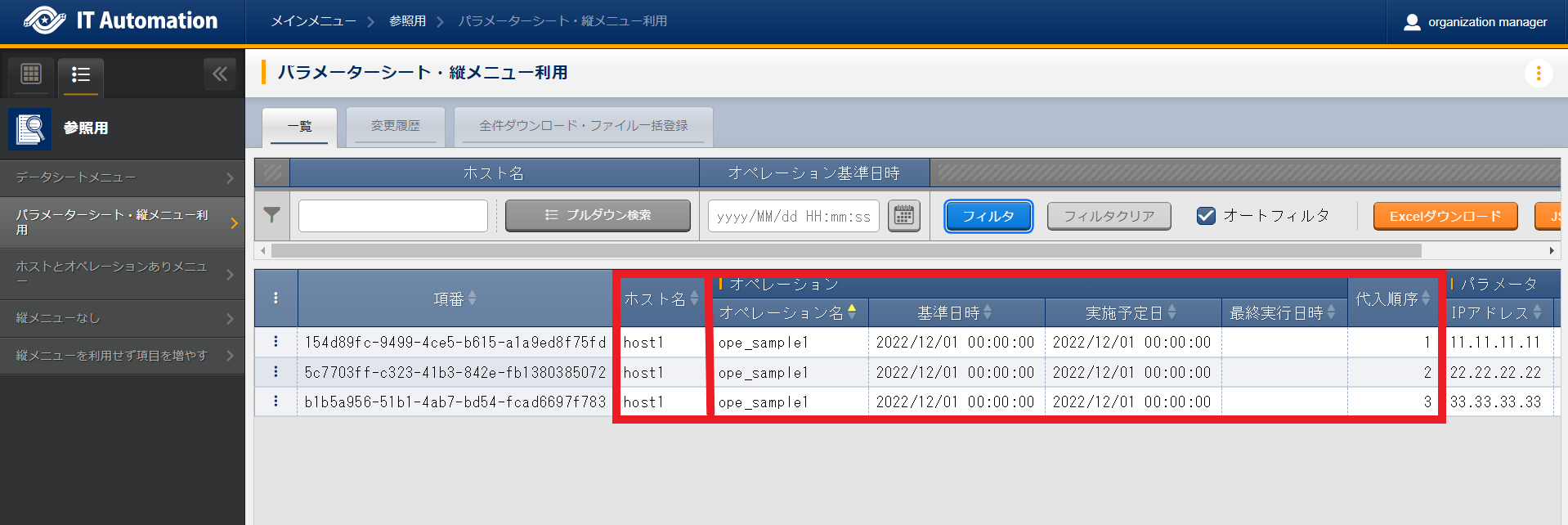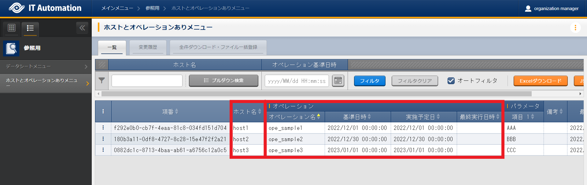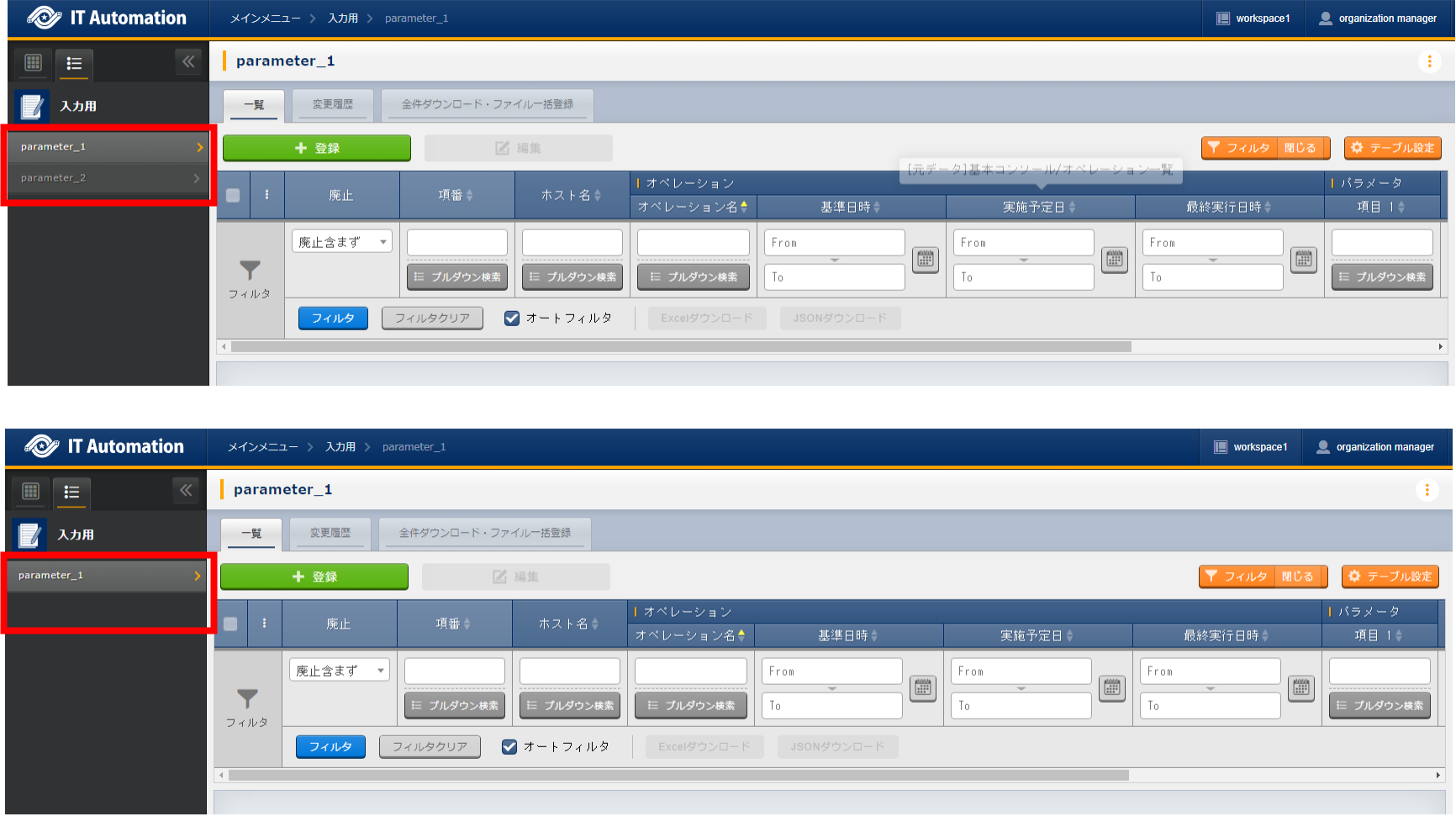 - ホスト/オペレーションありパラメータシートが「ホスト」と「オペレーション」単位で作成されます。
