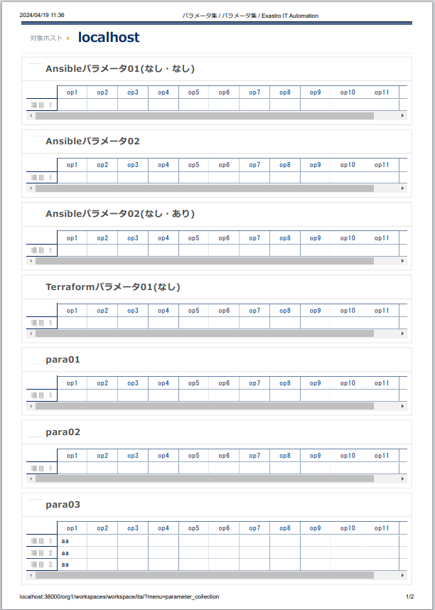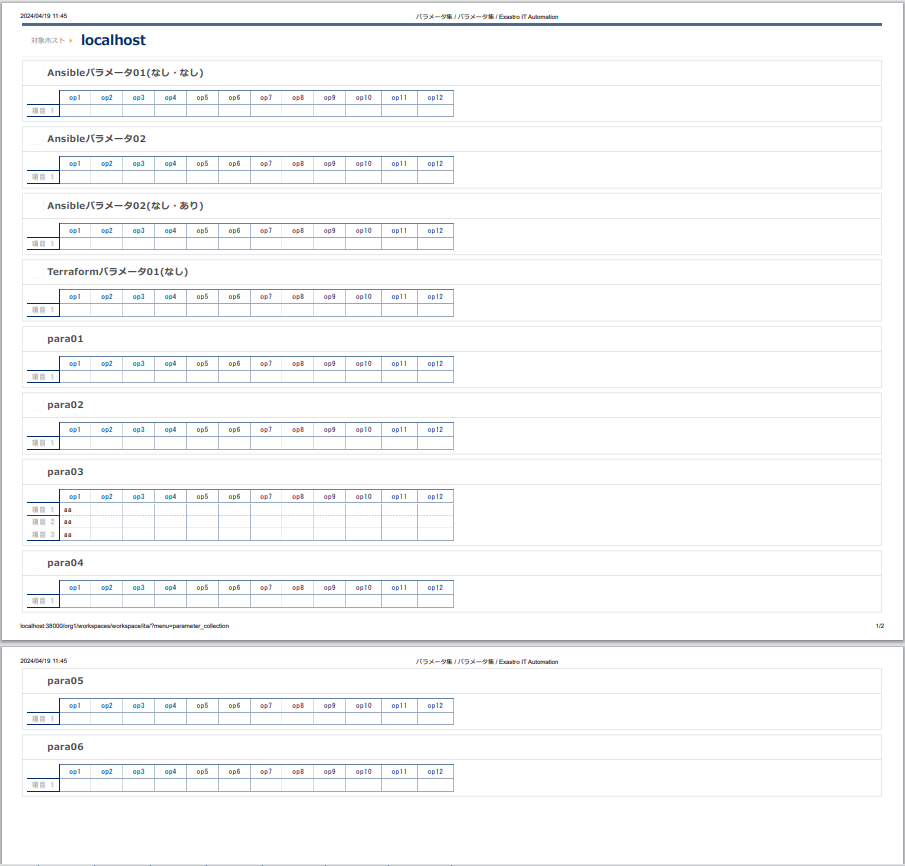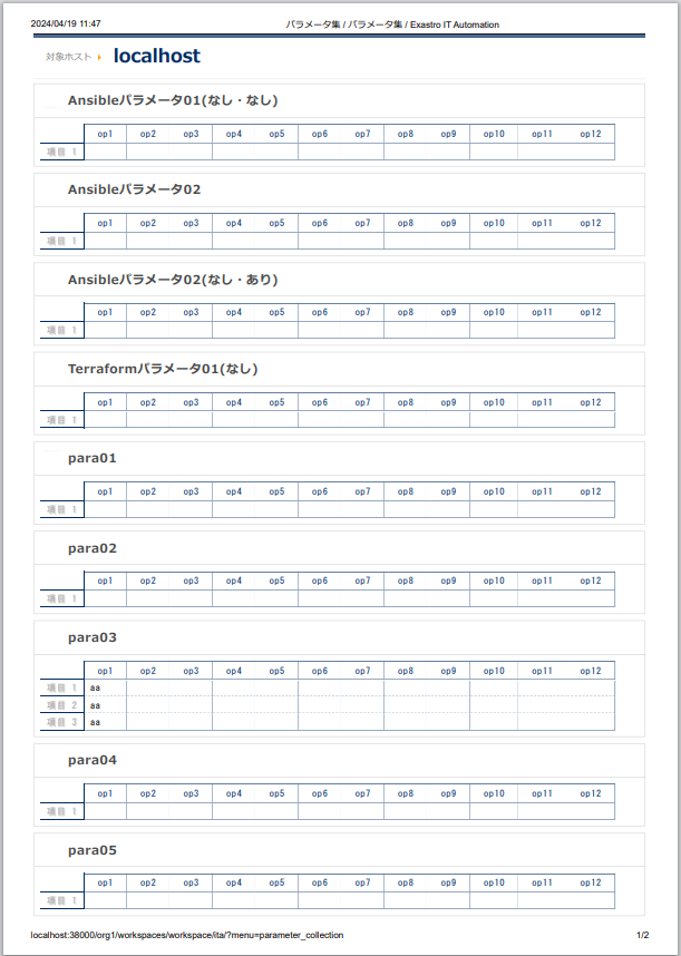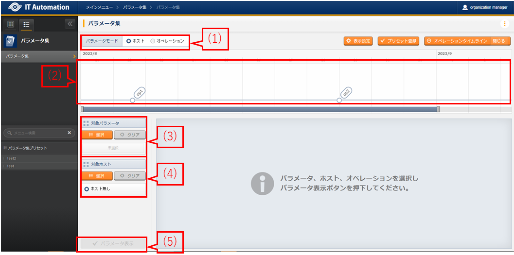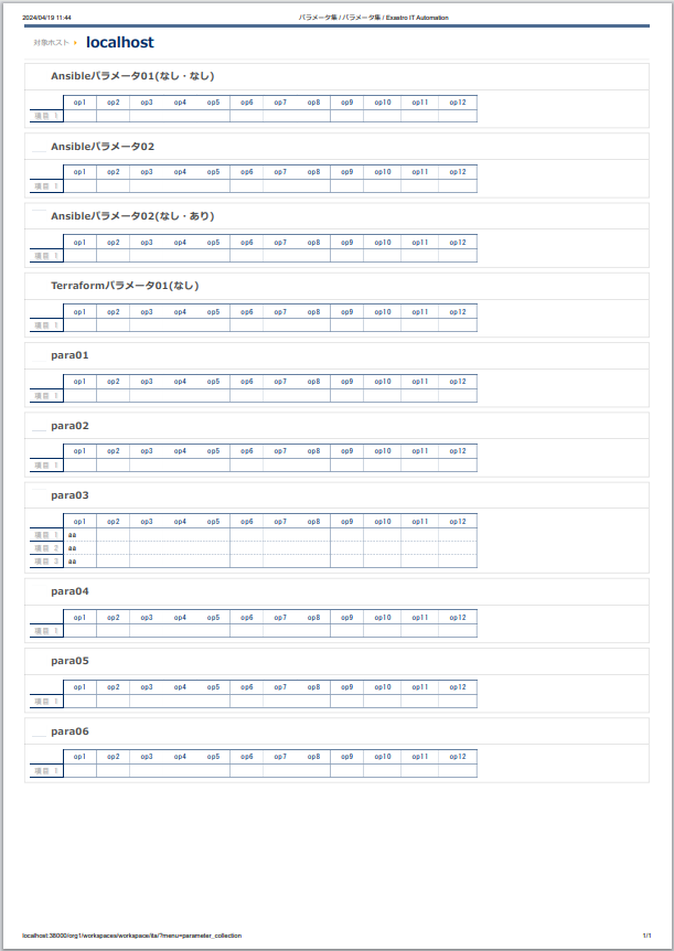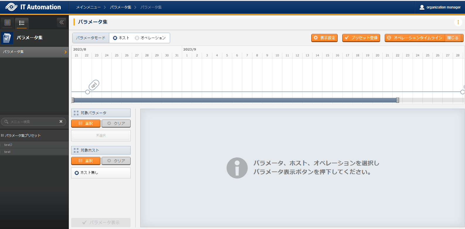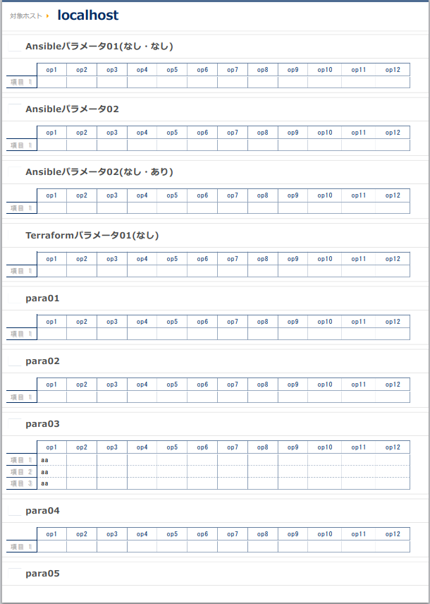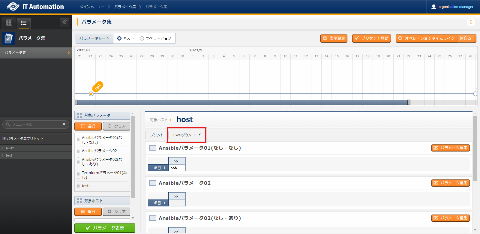パラメータシートに紐付くオペレーションを1つ選択して、そのオペレーションを基にパラメータシートの複数のホストのデータを取得します。 |