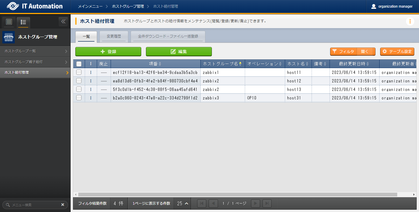 1.5.2.4. ホストグループとオペレーションと作業対象ホストの紐付け¶