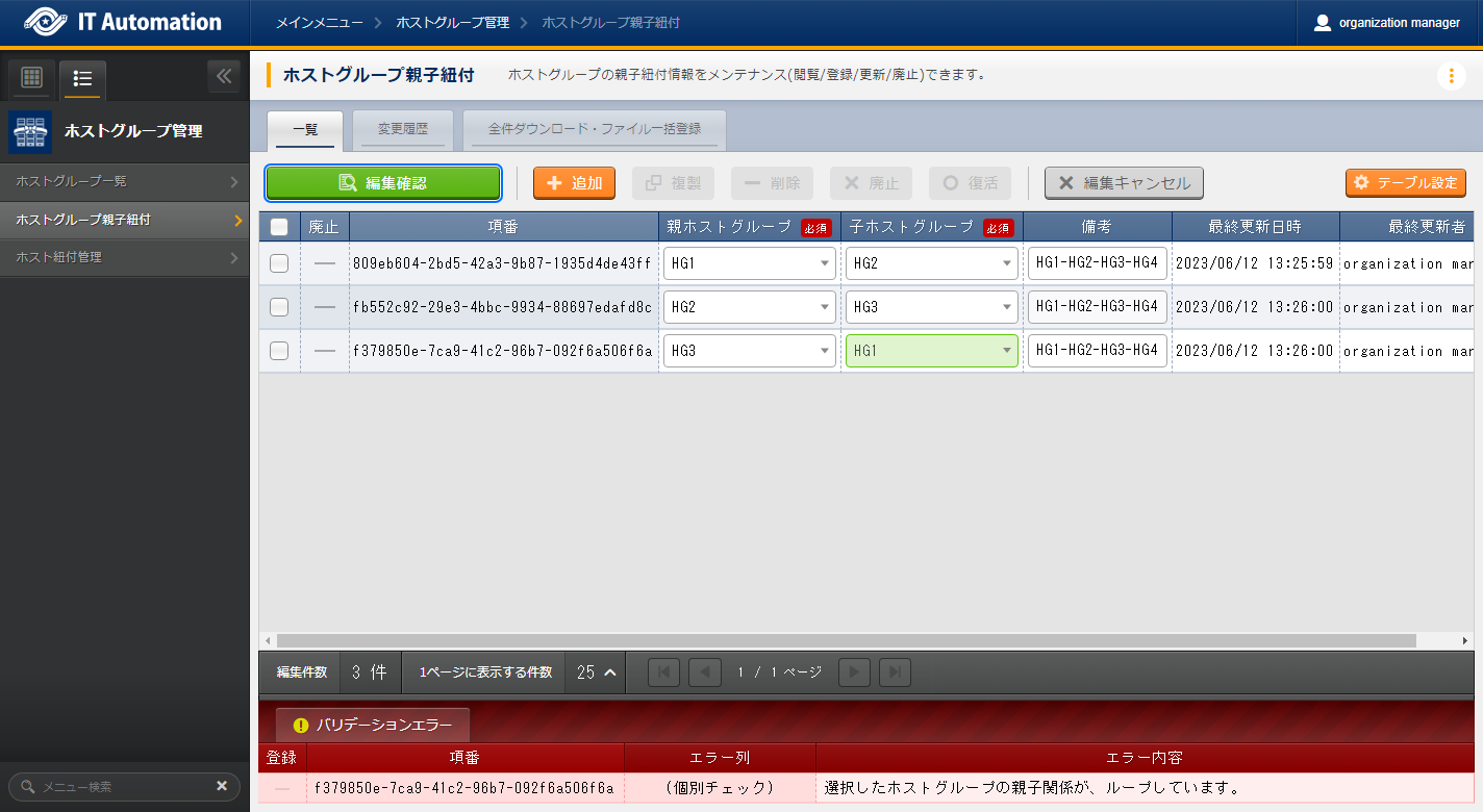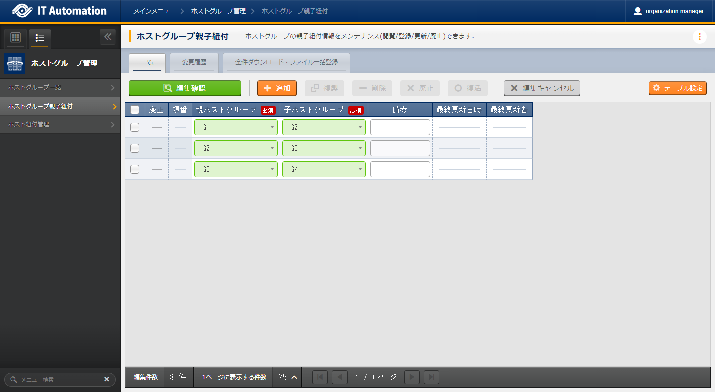 ホストグループ親子紐付 |