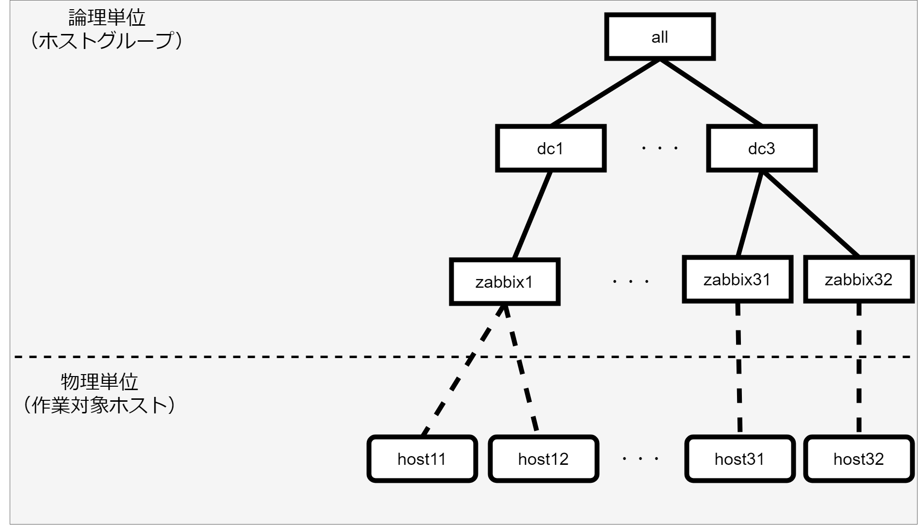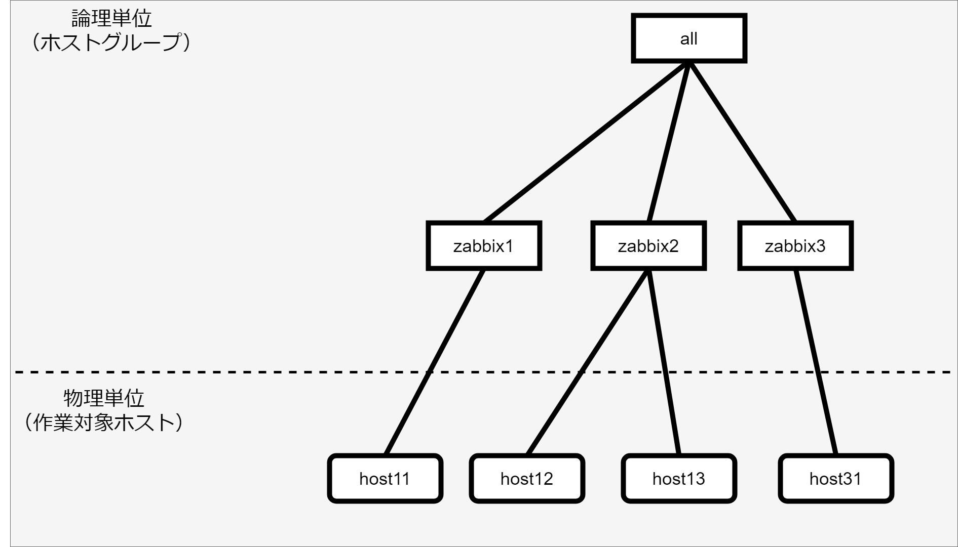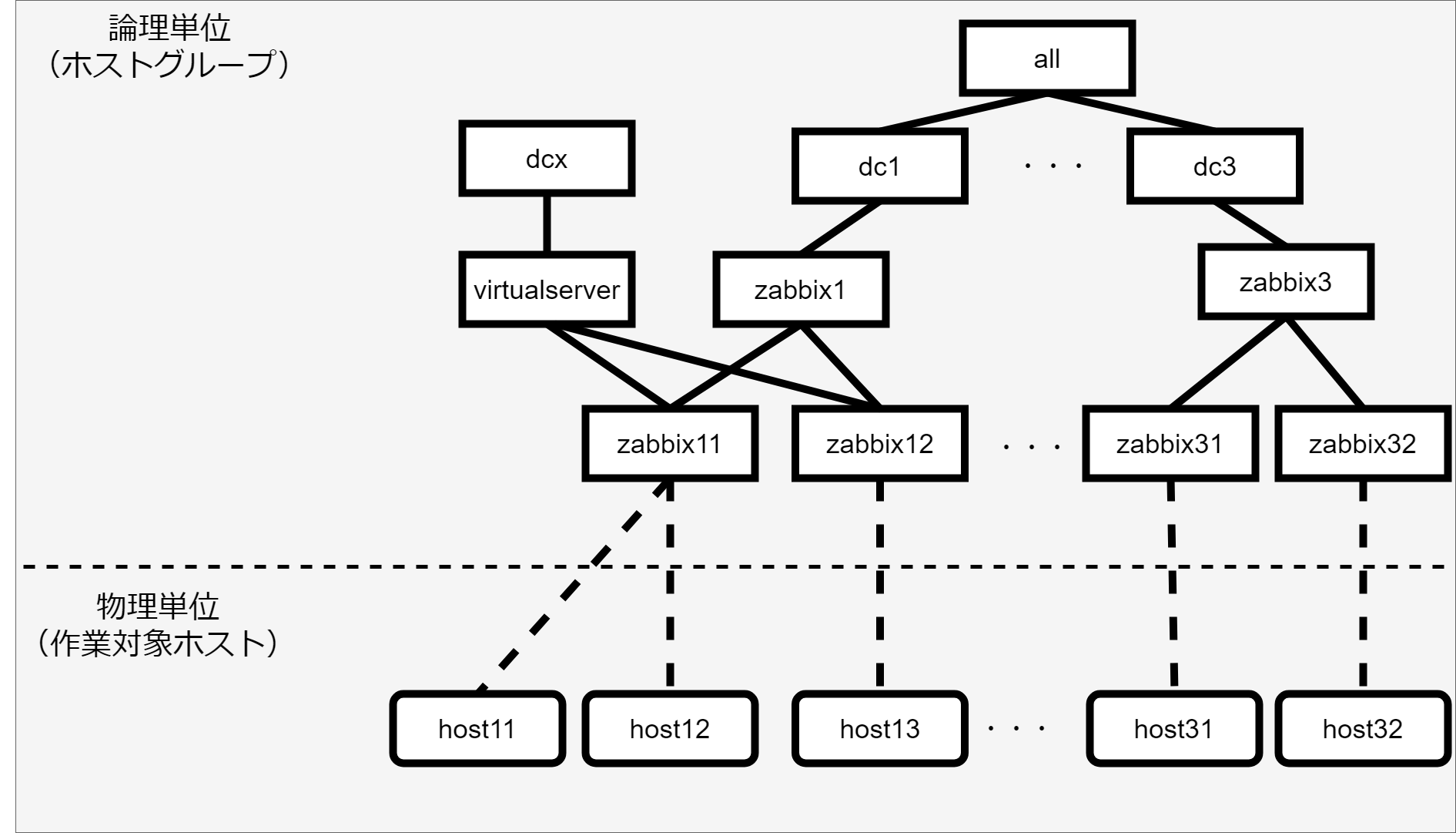 - ホストグループの親子関係は以下とします。(「ホストグループ親子関係の定義」で登録する情報)