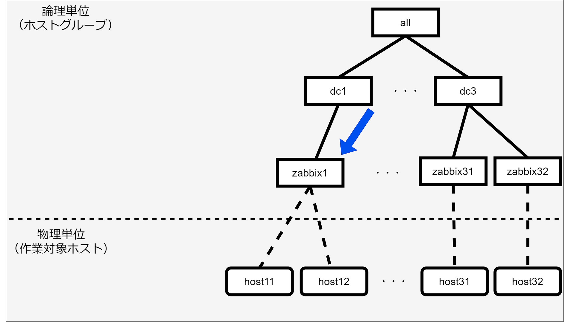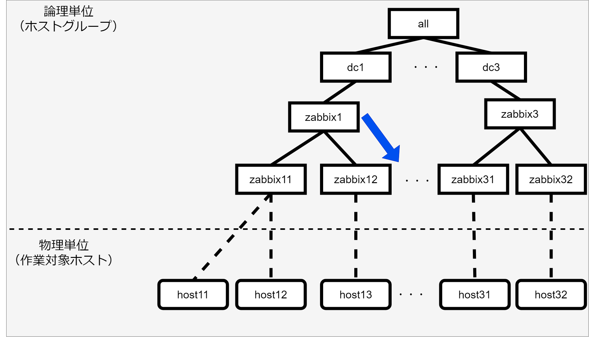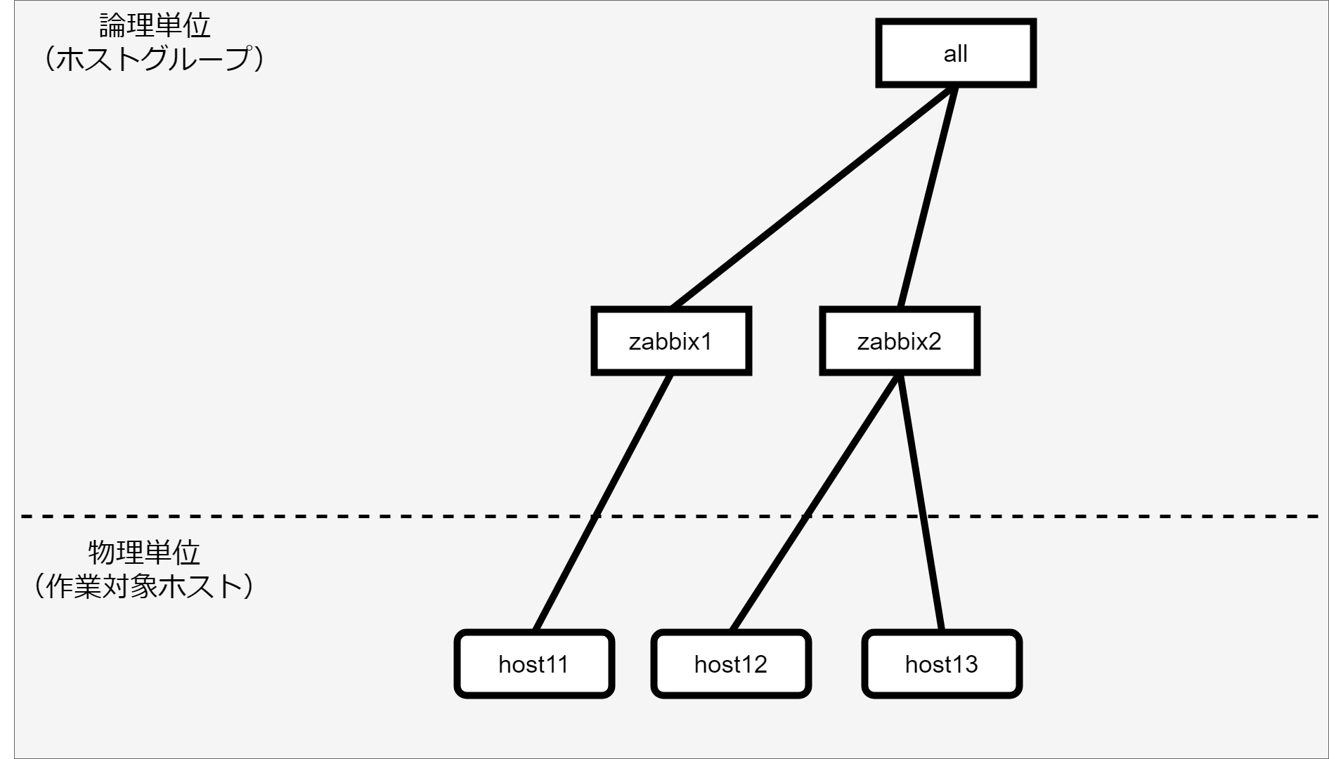 - ホストグループの親子関係は以下とします。(「ホストグループ親子関係の定義」で登録する情報)