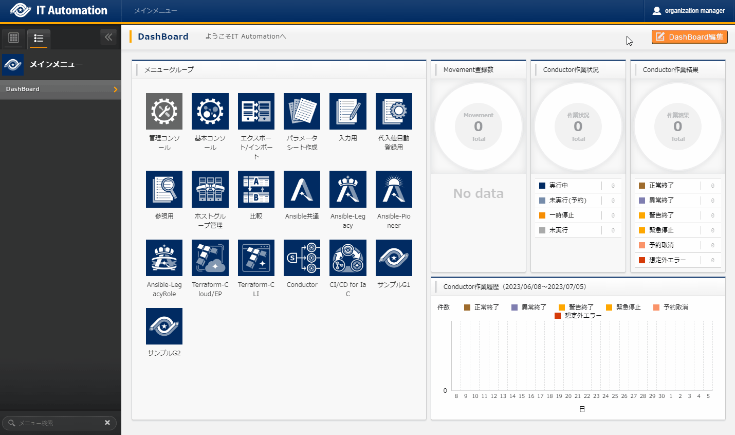 各オーケストレーションに登録されているMovementの件数が円グラフで表示されます。