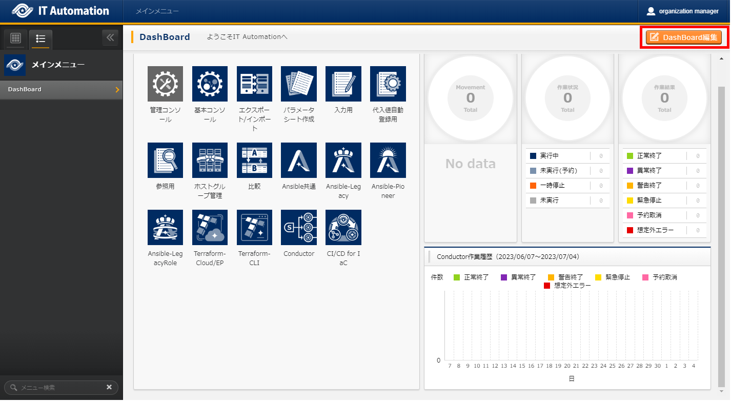 Conductorの作業状況のステータスごとに件数が円グラフで表示されます。