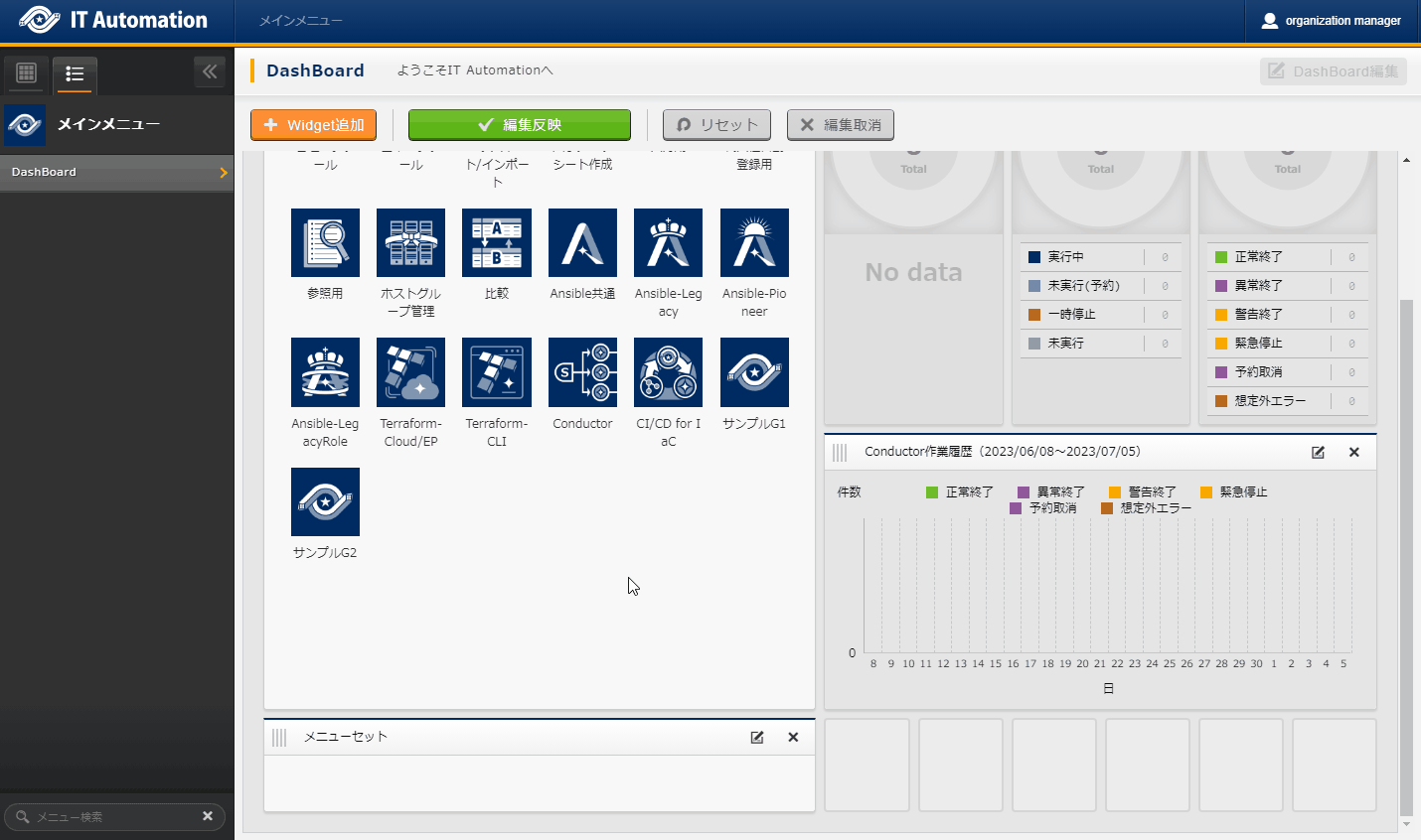 - 編集反映編集反映 から、Widgetの変更内容を反映します。