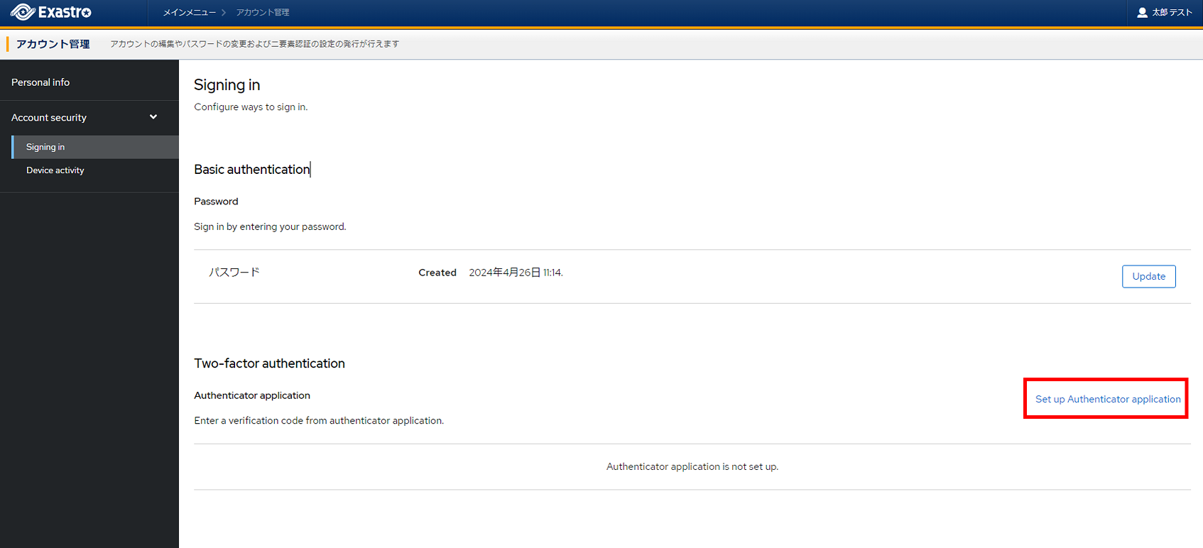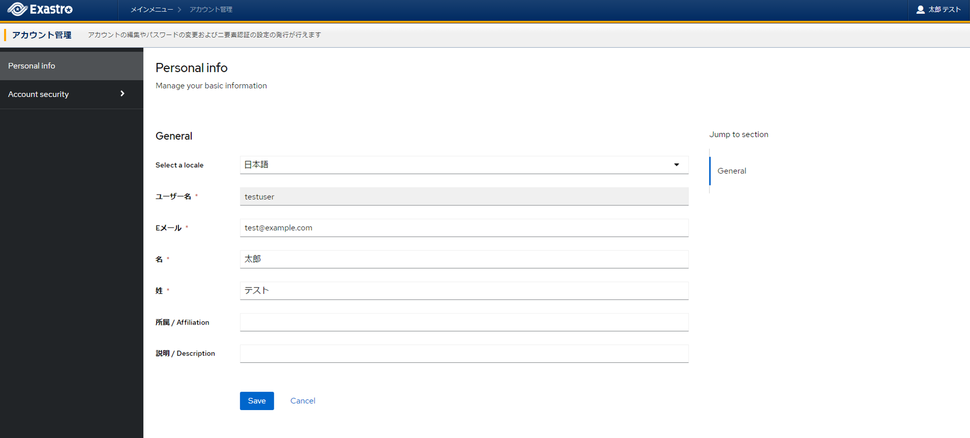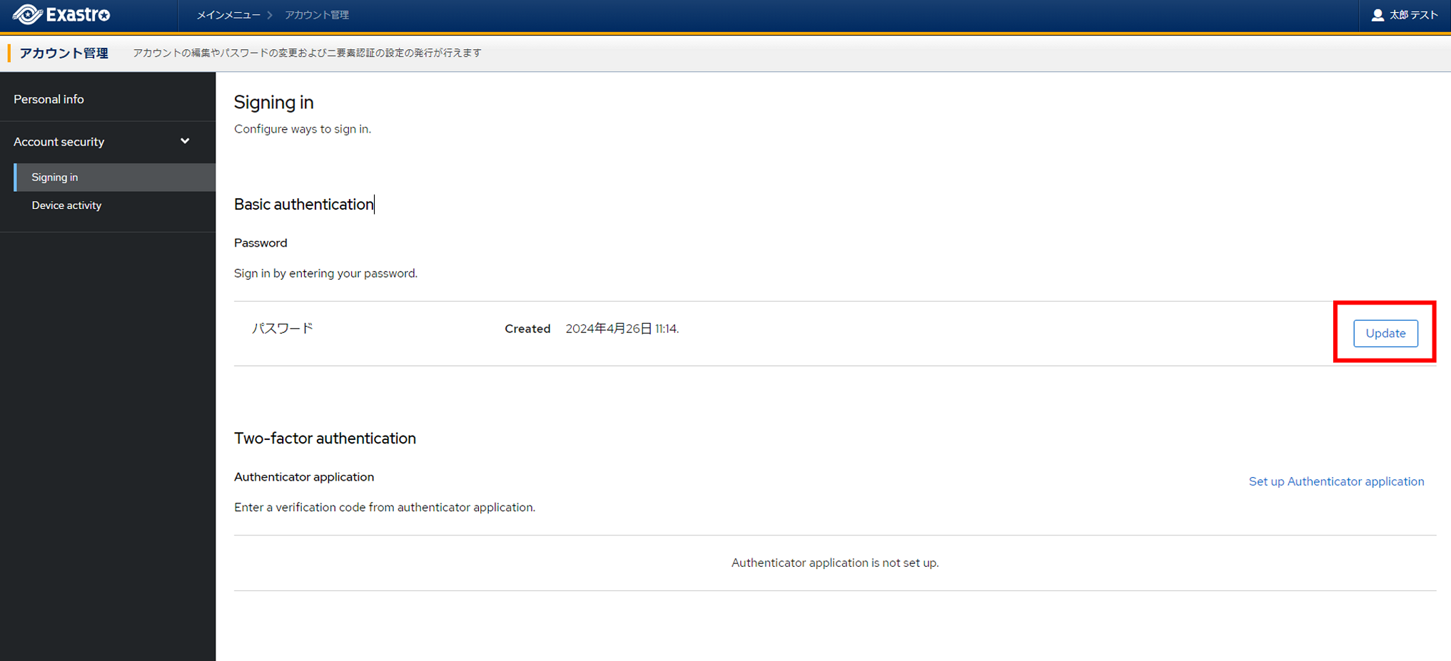 - アカウント情報の更新し、 更新 ボタンを押下します。
