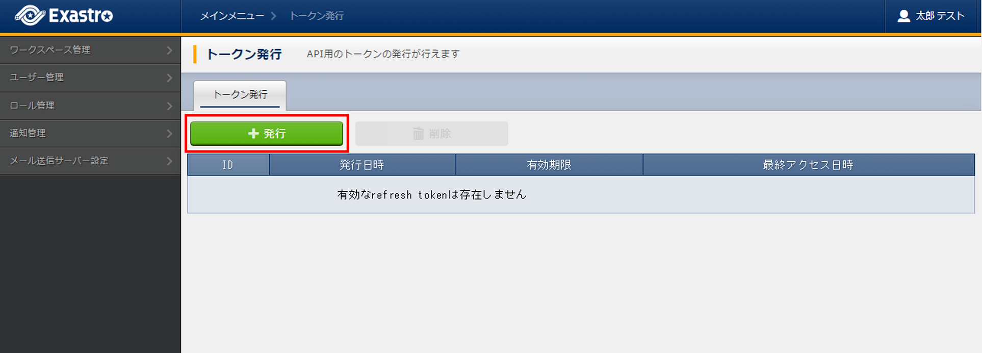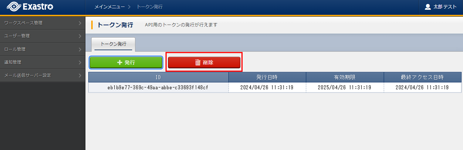 - 発行したトークンが不要となった際は、削除 ボタンを押下して、トークンを削除することができます。