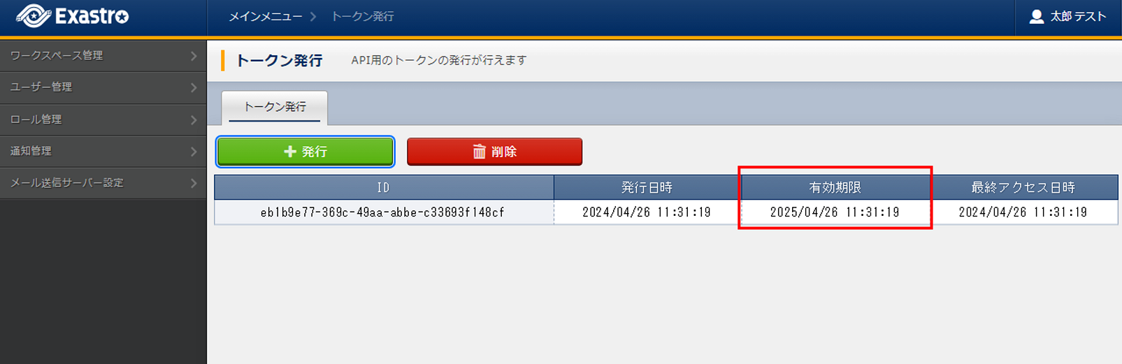 - 発行したトークンの有効期限は、トークン一覧で確認できます。