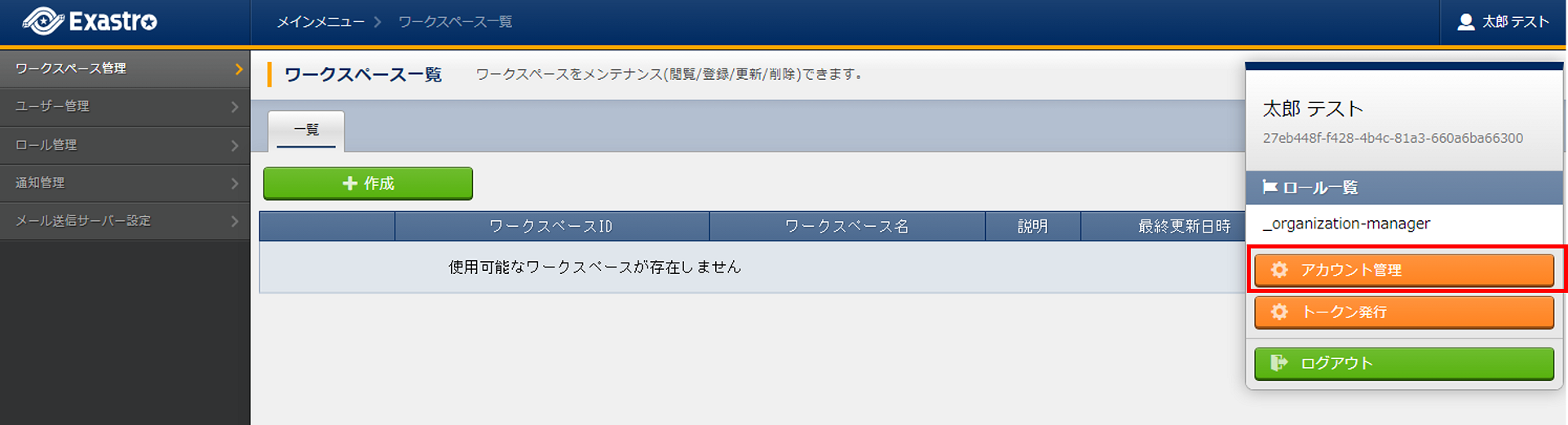 - アカウント管理はログインユーザーのアイコンを選択して表示されるメニューから を選択することにより設定できます。