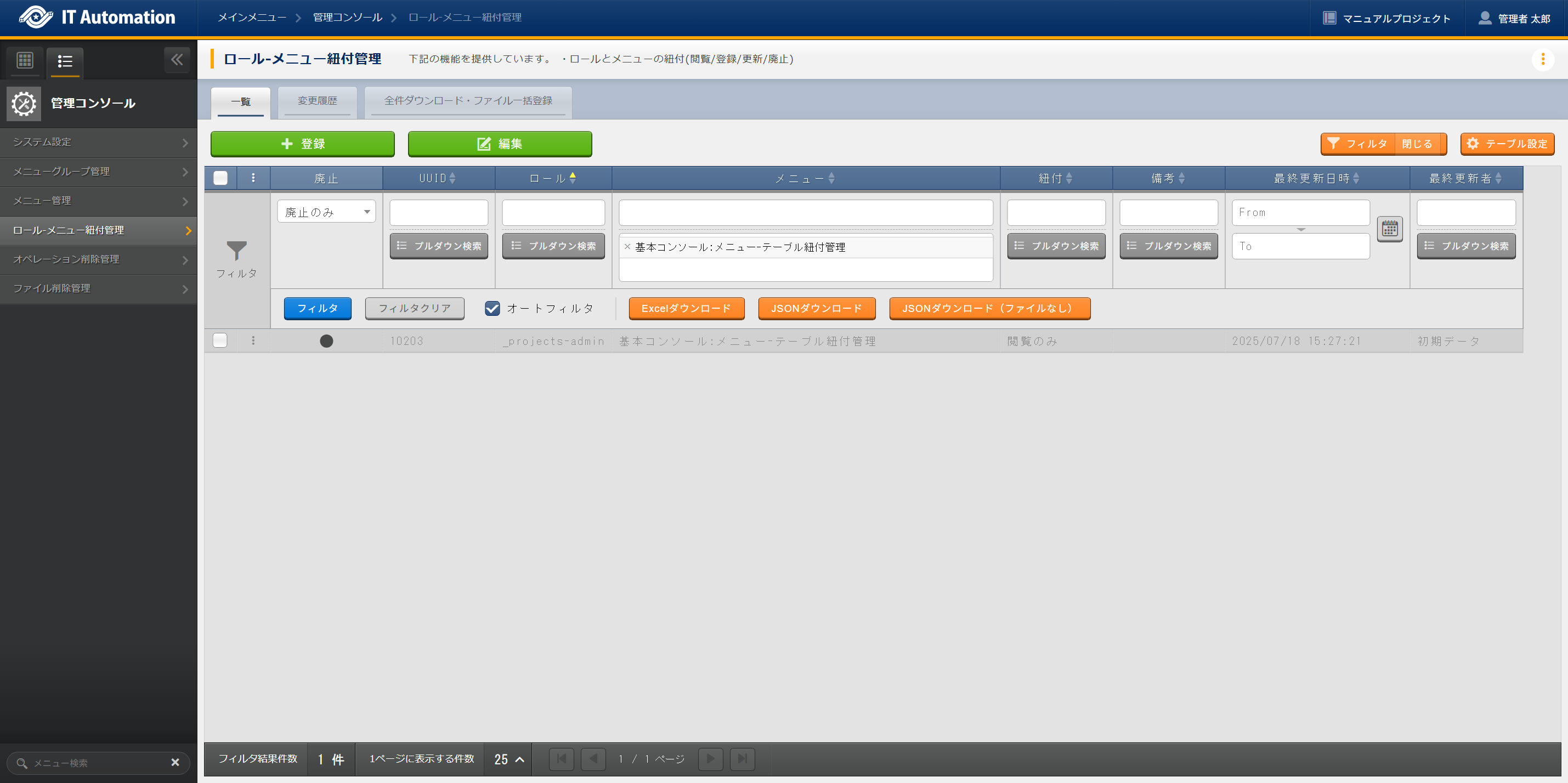 11.4.1. メニュー「基本コンソール:メニュー-テーブル紐付管理」の復活・設定¶