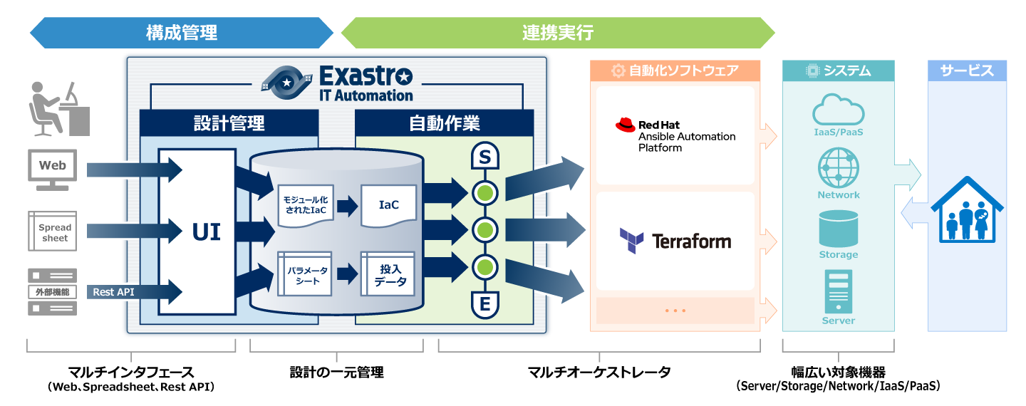 - Terraform CLI driverITAと同一の環境内にインストールしたTerraformに対し、作業の実行(Plan/ Apply)および作業ログの取得を行うことができます。操作方法等については「Terraform CLI driver」を参照してください。