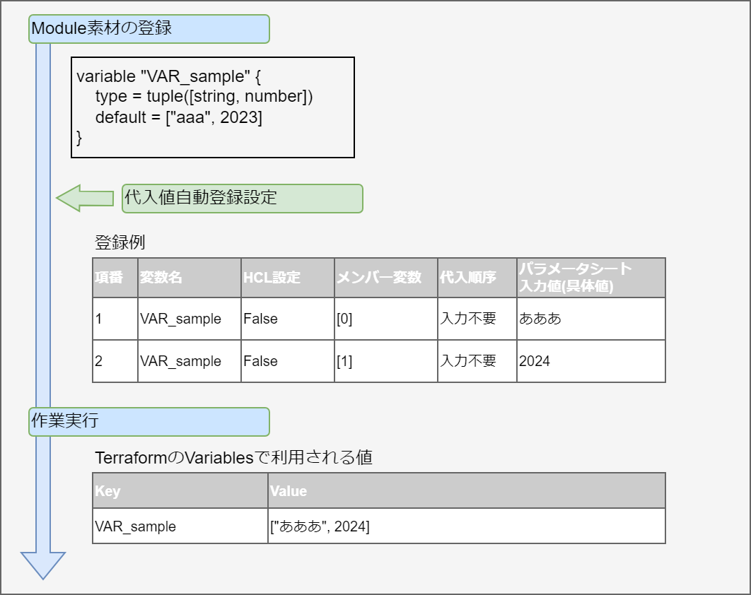 variable "VAR_hoge" { type = tuple([string,number]) default = ["abc",2023] }