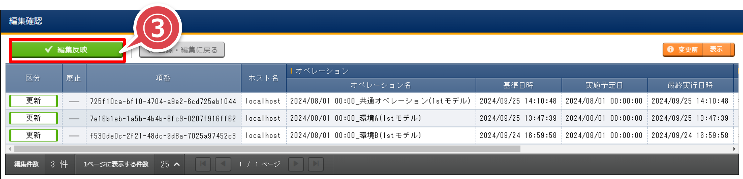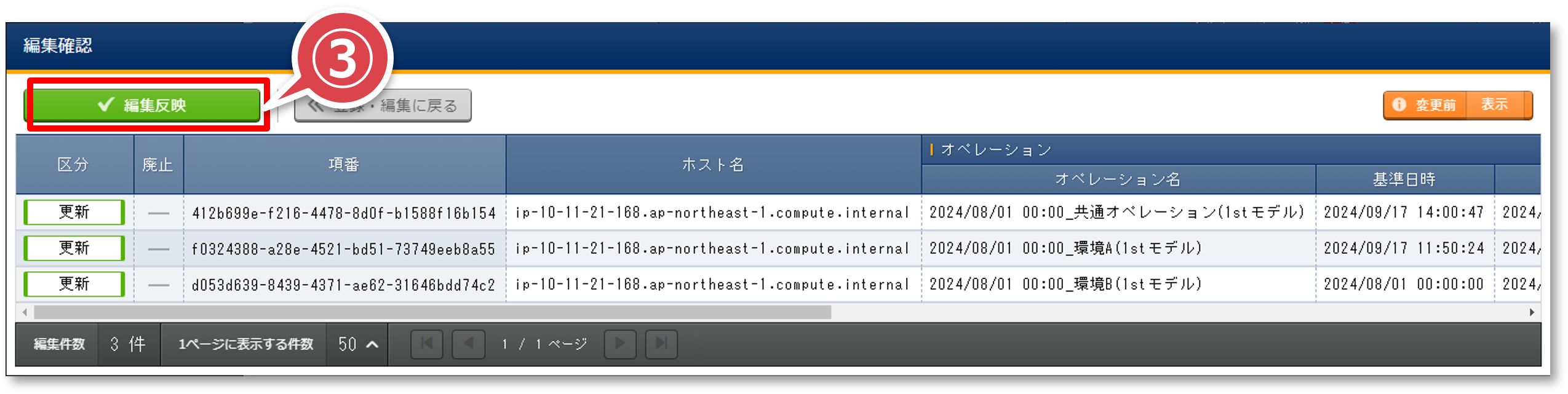 「編集確認」ポップアップ画面の「編集反映」ボタンを押下する