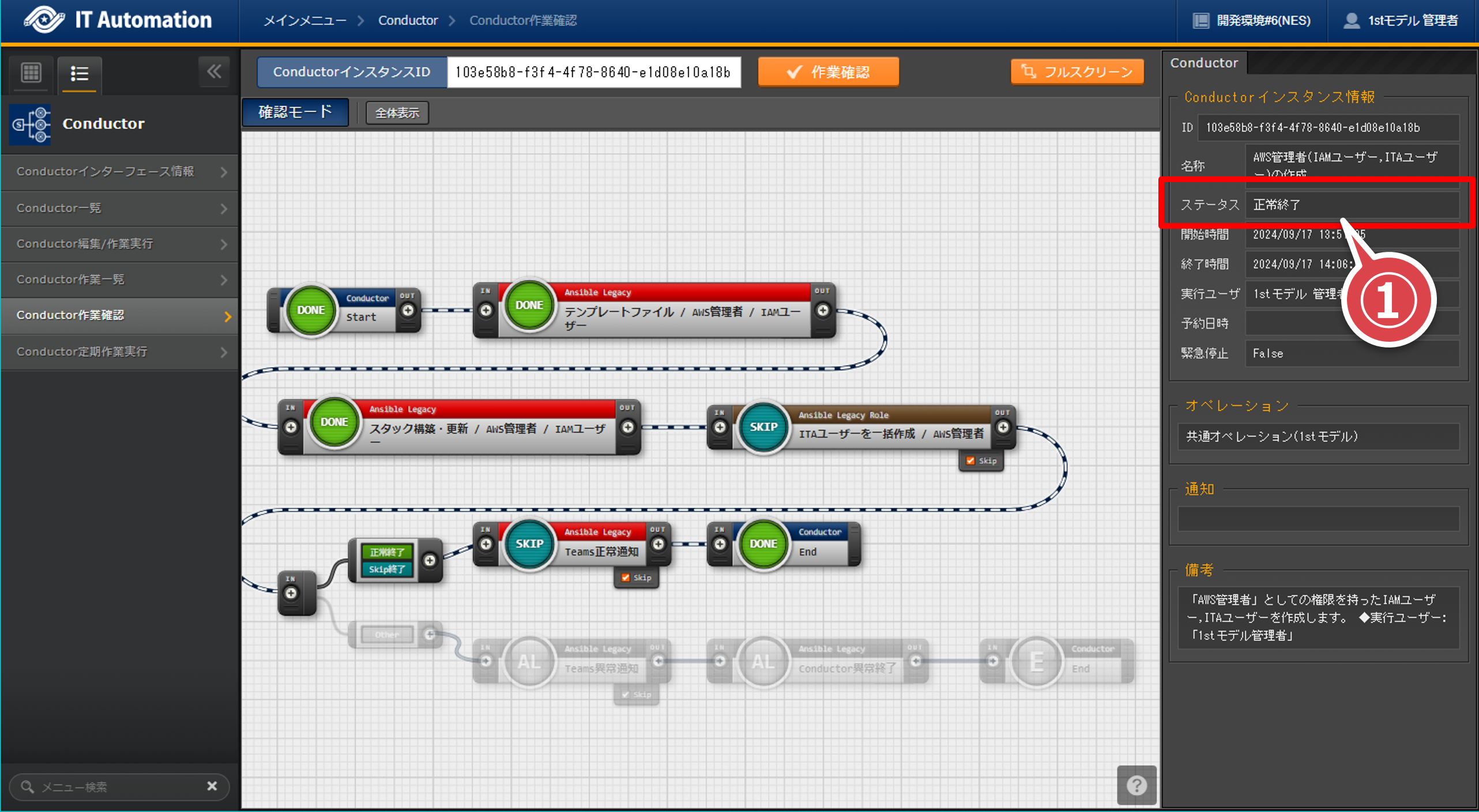 「Conductor編集/作業実行」画面の「作業実行」ボタンを押下する