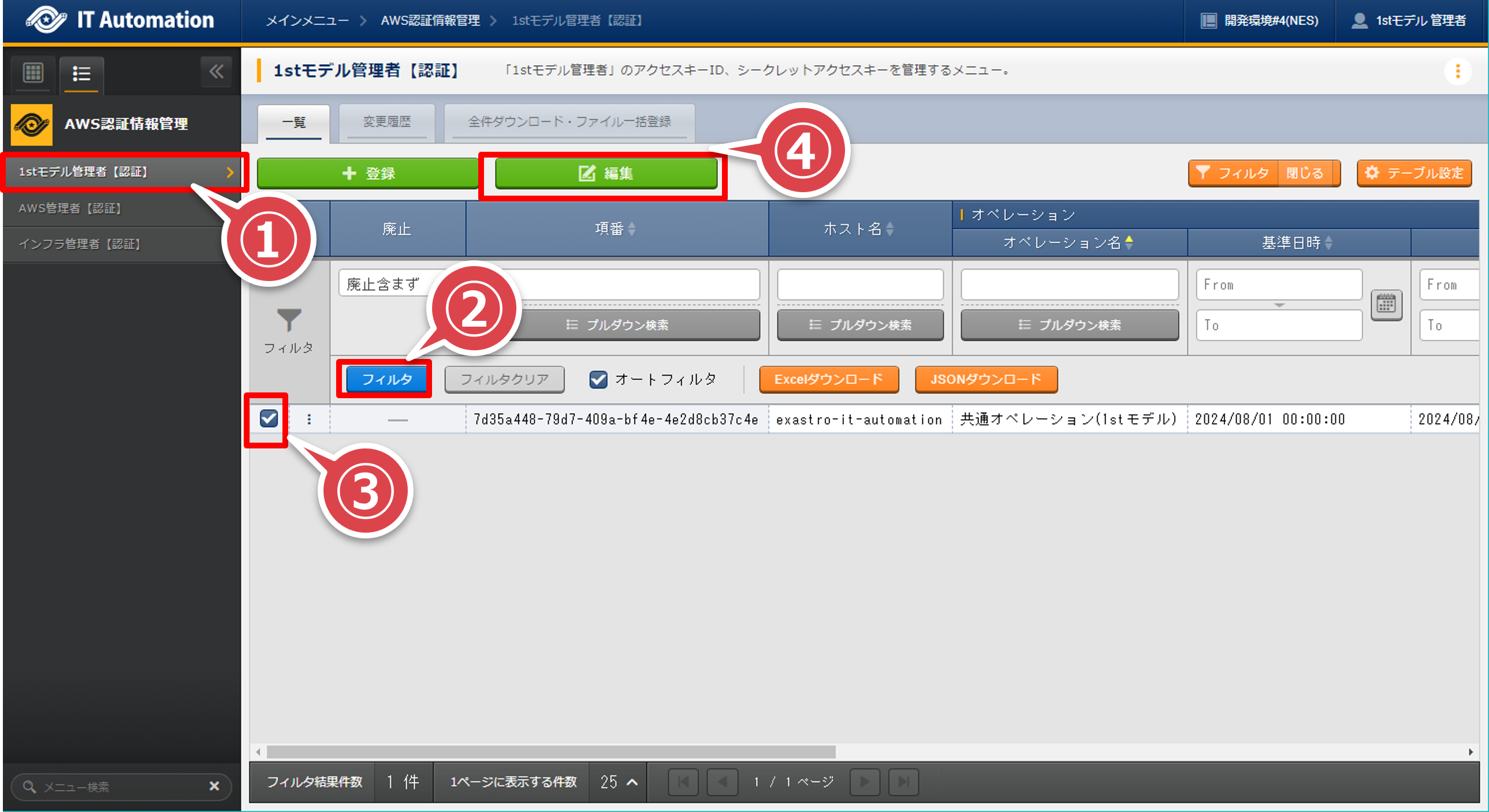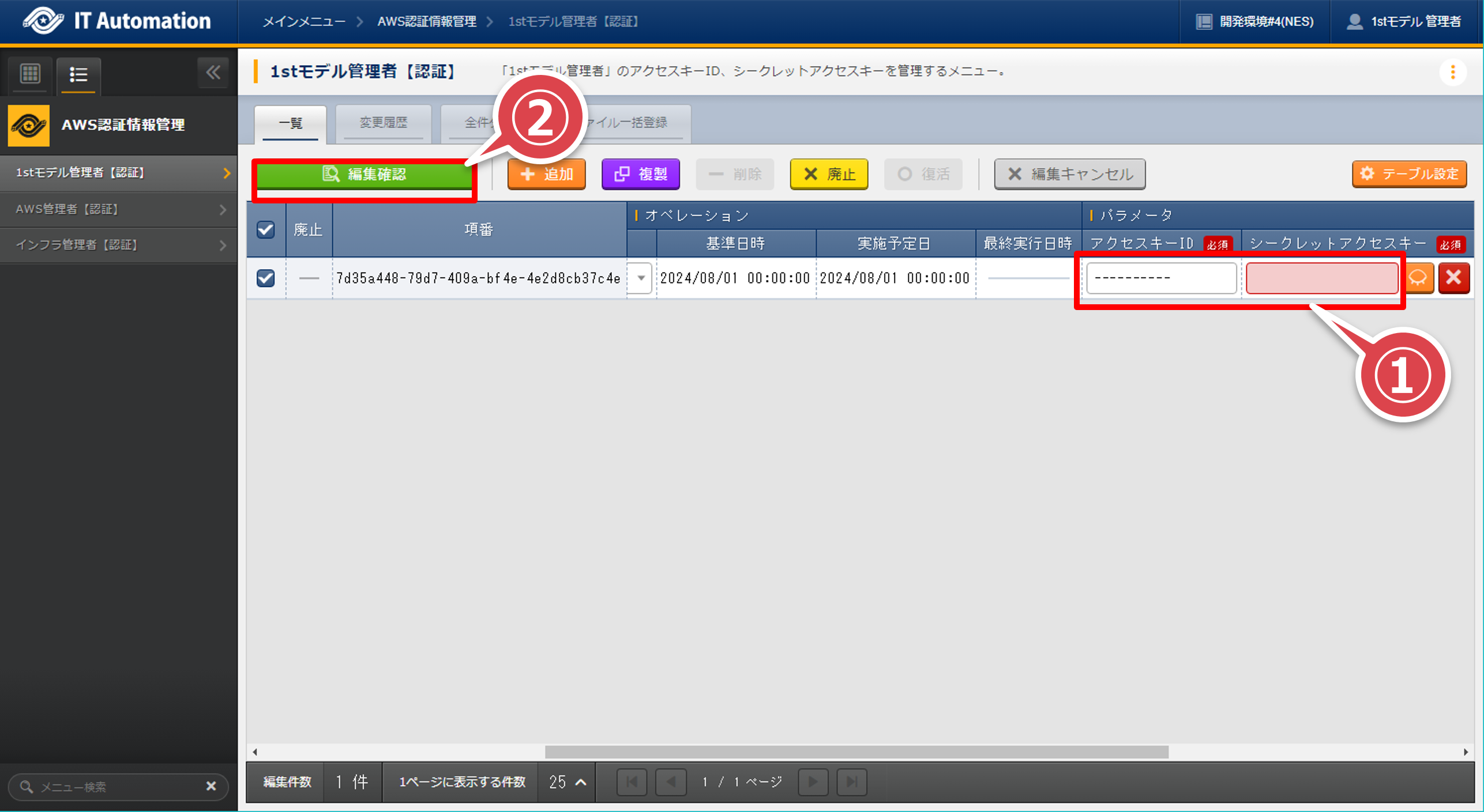 ITAに「1stモデル管理者」でログインする