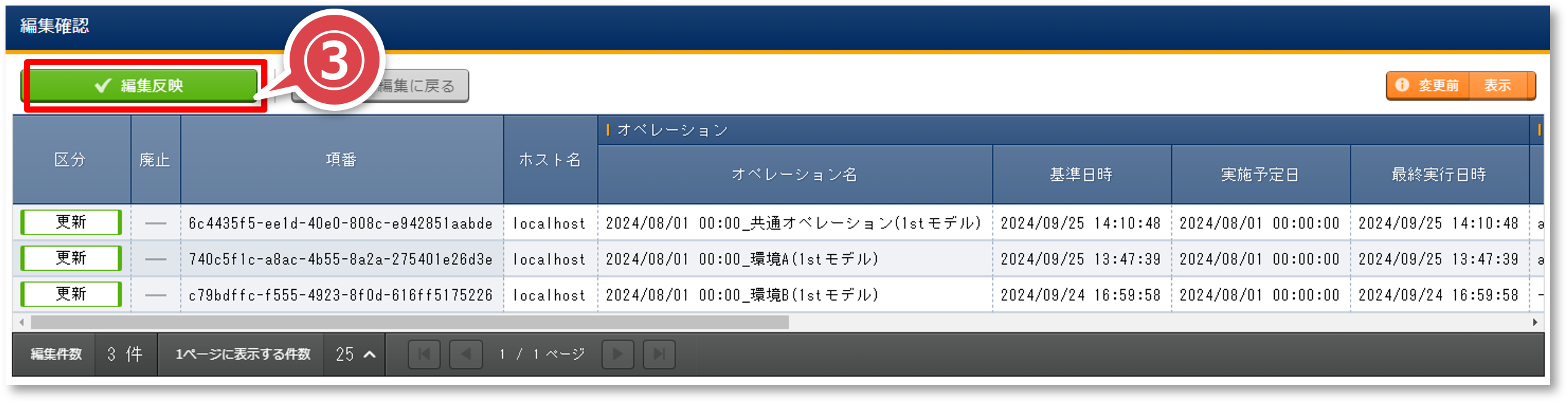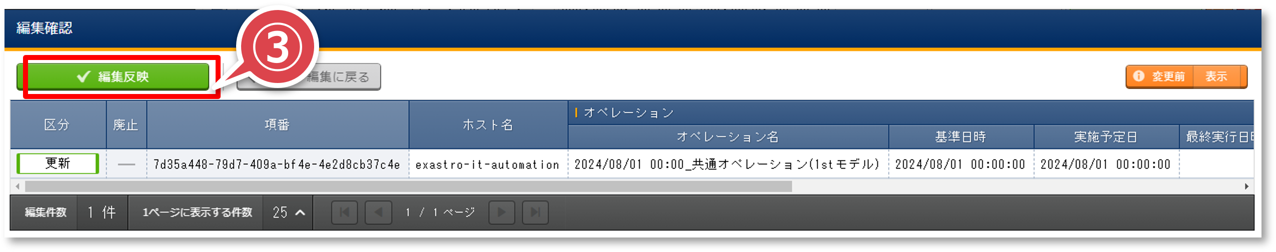 「編集確認」ポップアップ画面の「編集反映」ボタンを押下する
