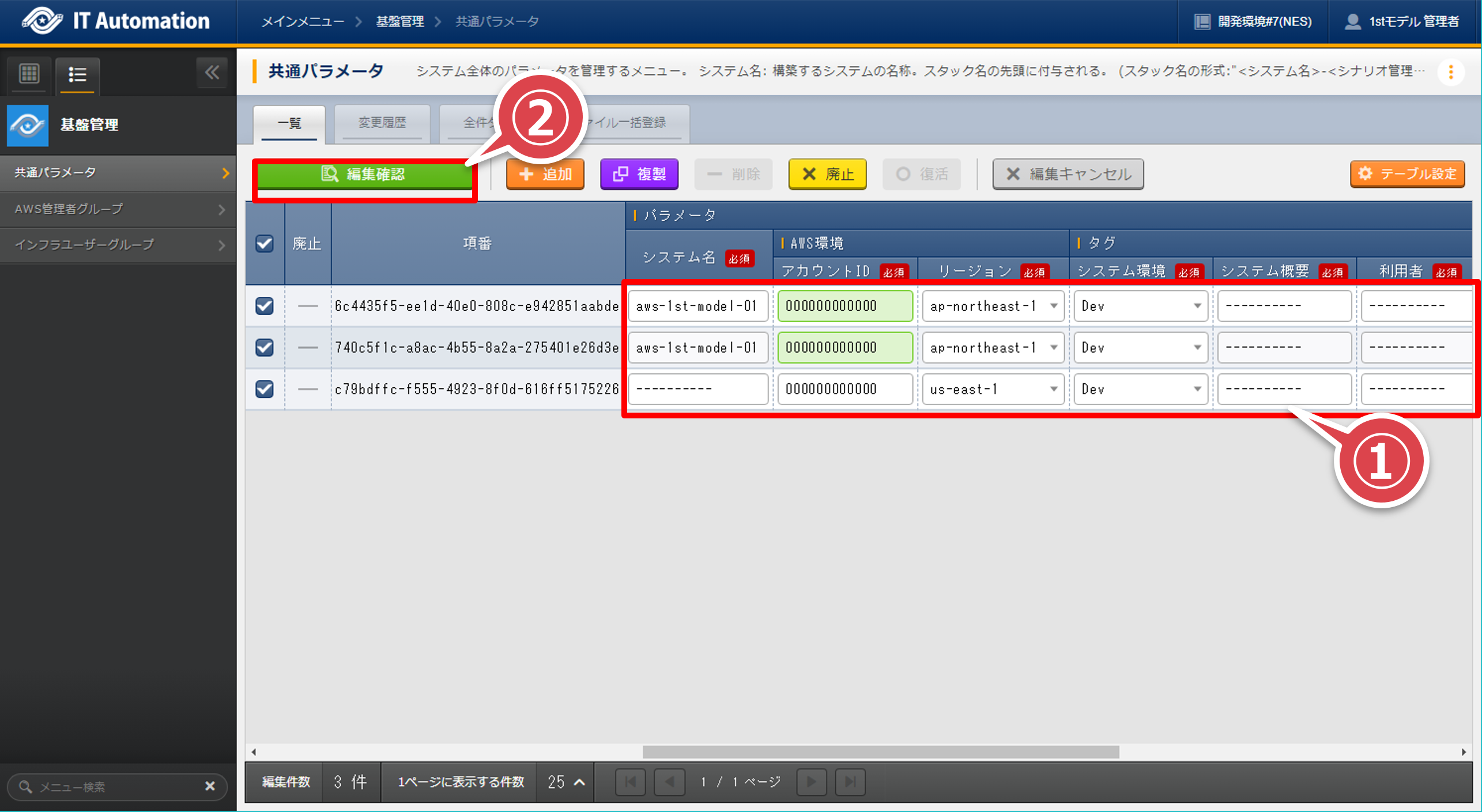全てのレコードをチェックして「編集」ボタンを押下する