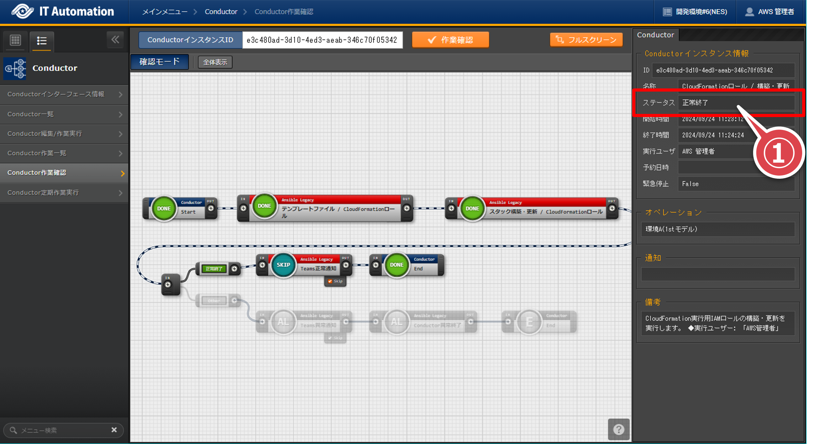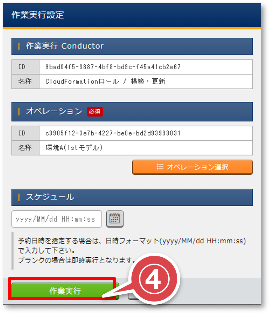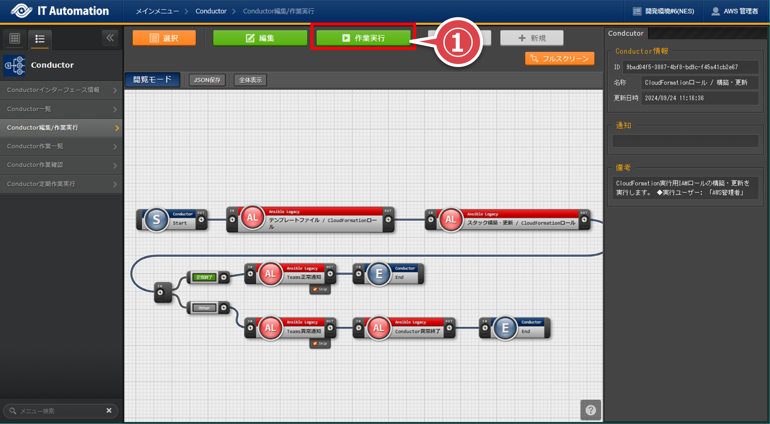 「Conductor編集/作業実行」画面の「作業実行」ボタンを押下する