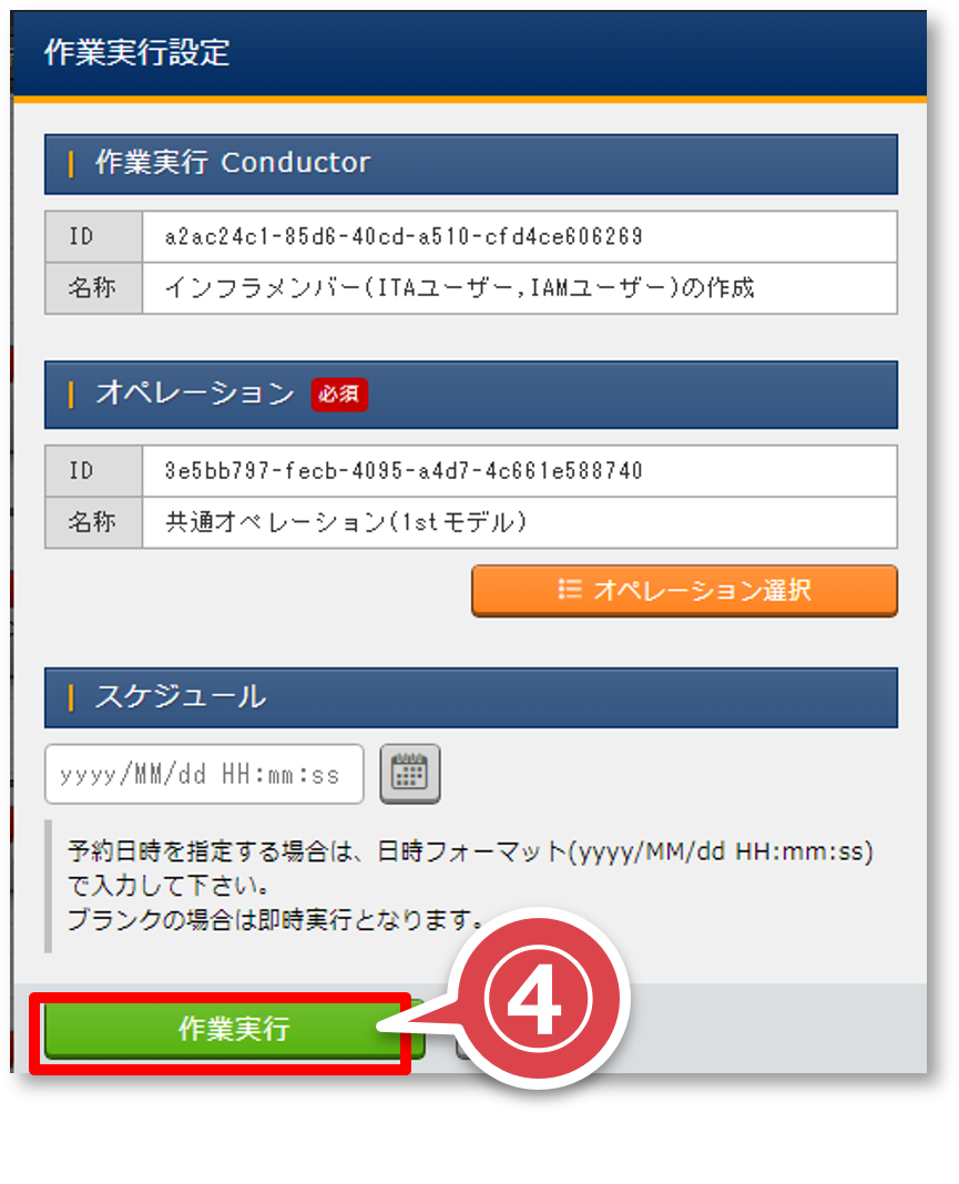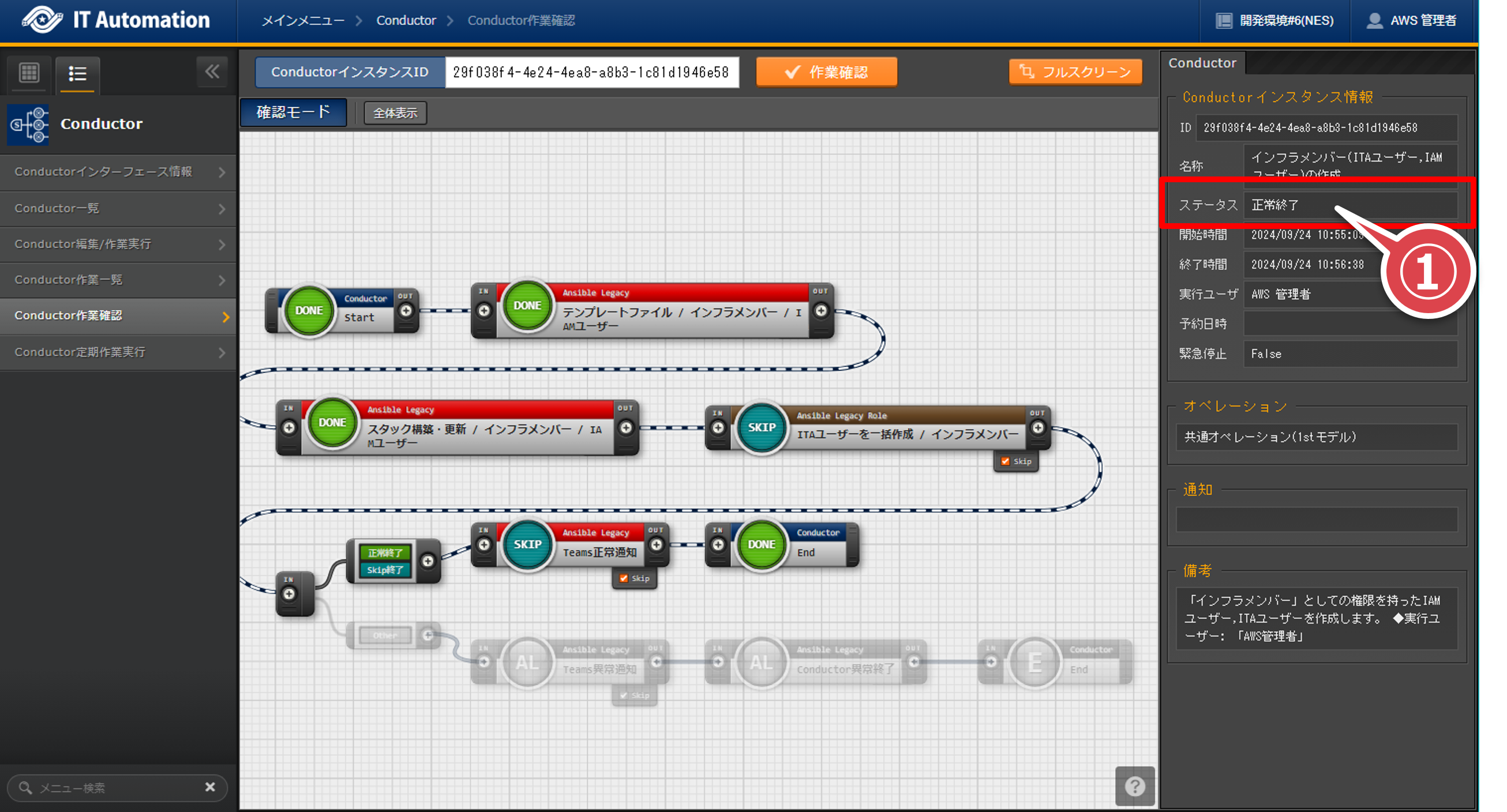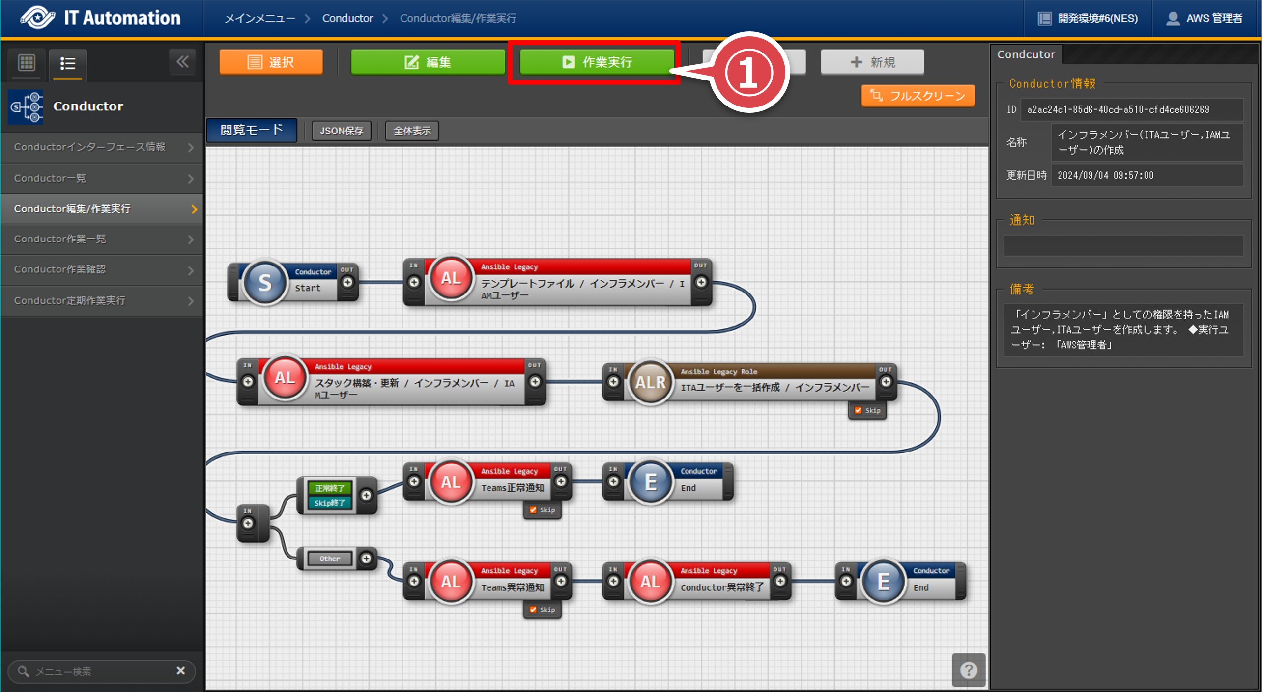 「Conductor編集/作業実行」画面の「作業実行」ボタンを押下する