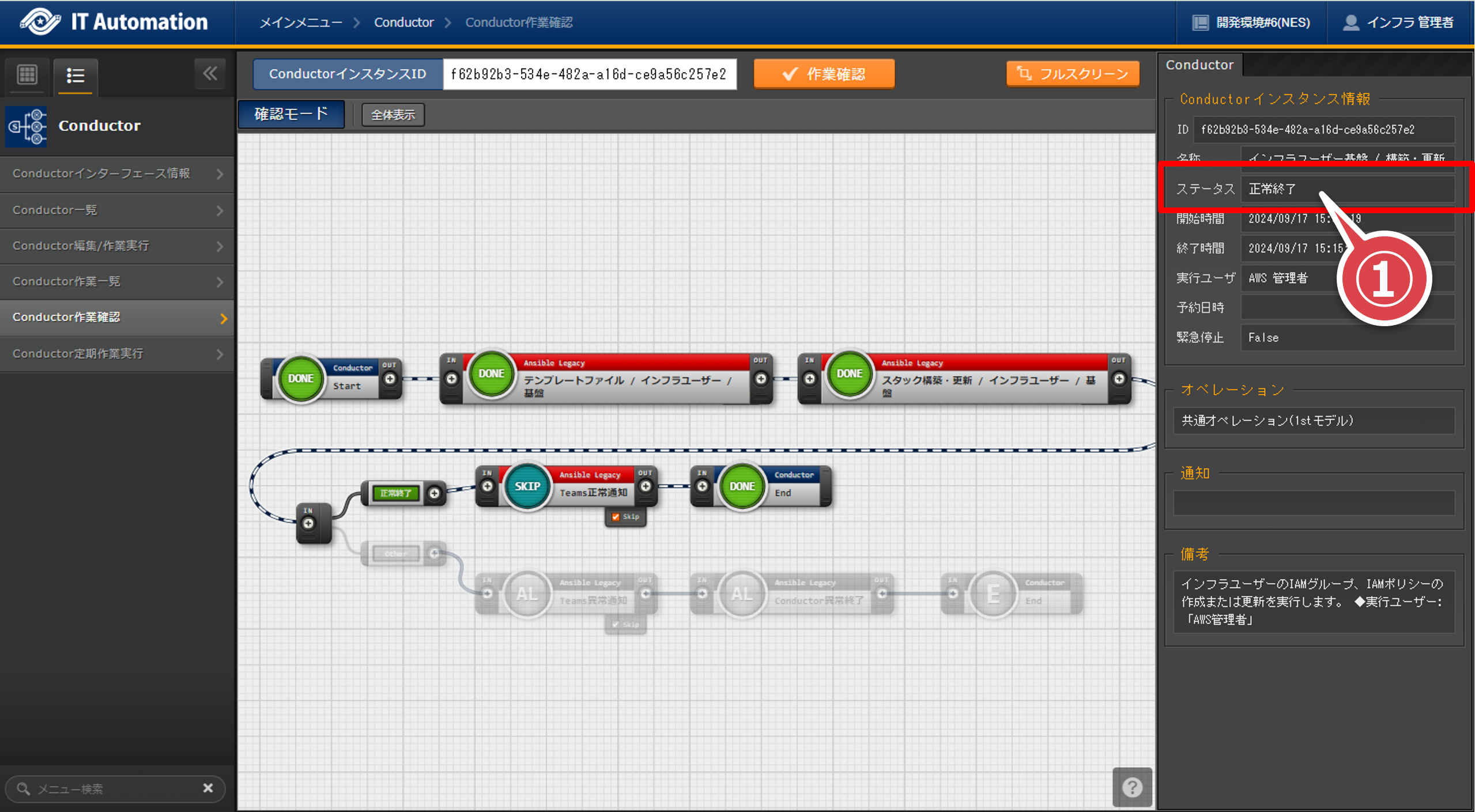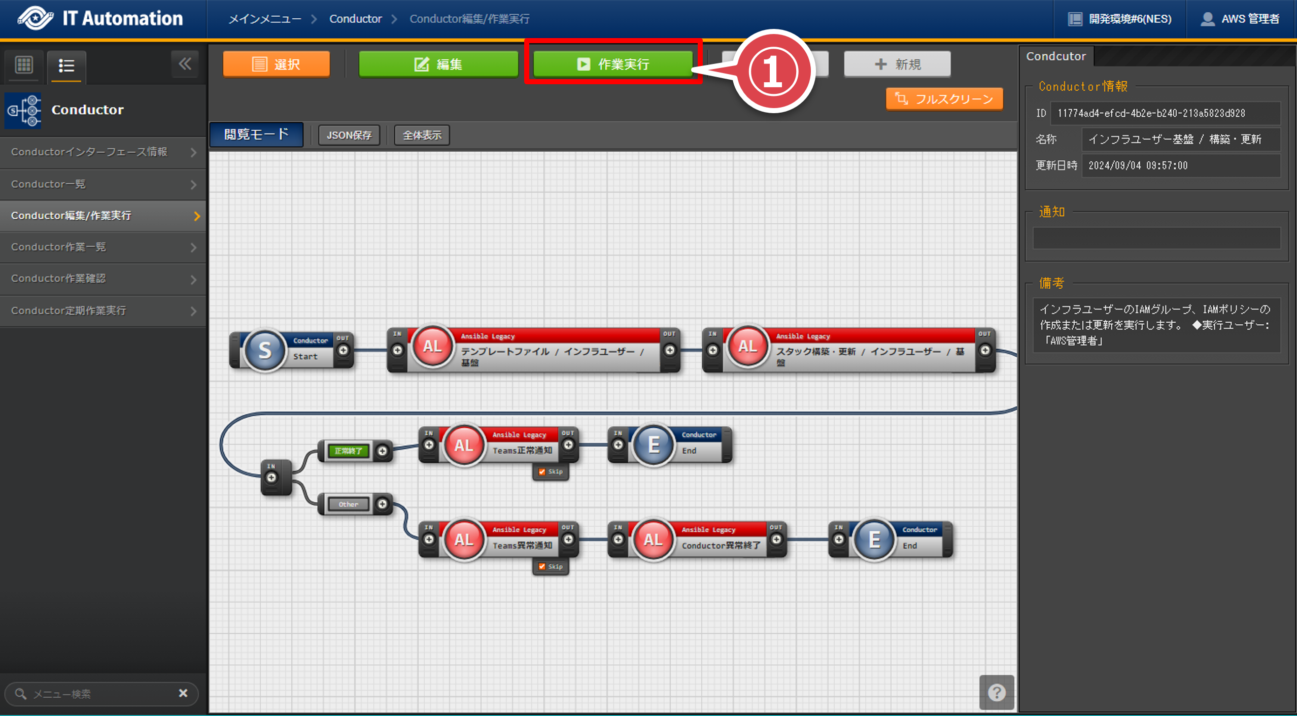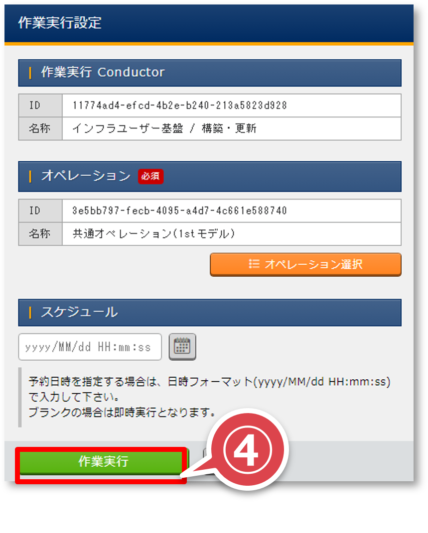 「Conductor編集/作業実行」画面の「作業実行」ボタンを押下する