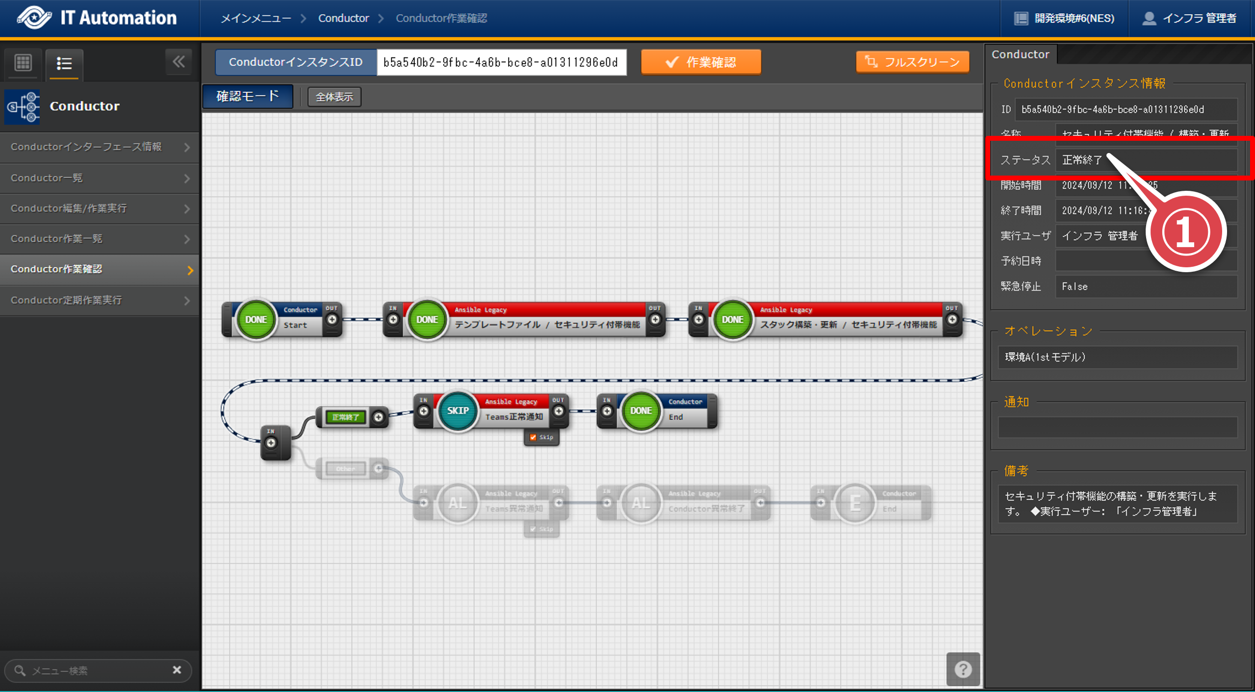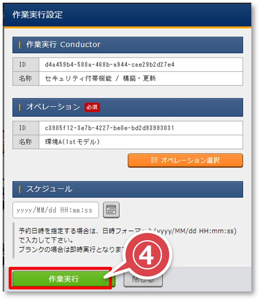 「Conductor編集/作業実行」画面の「作業実行」ボタンを押下する