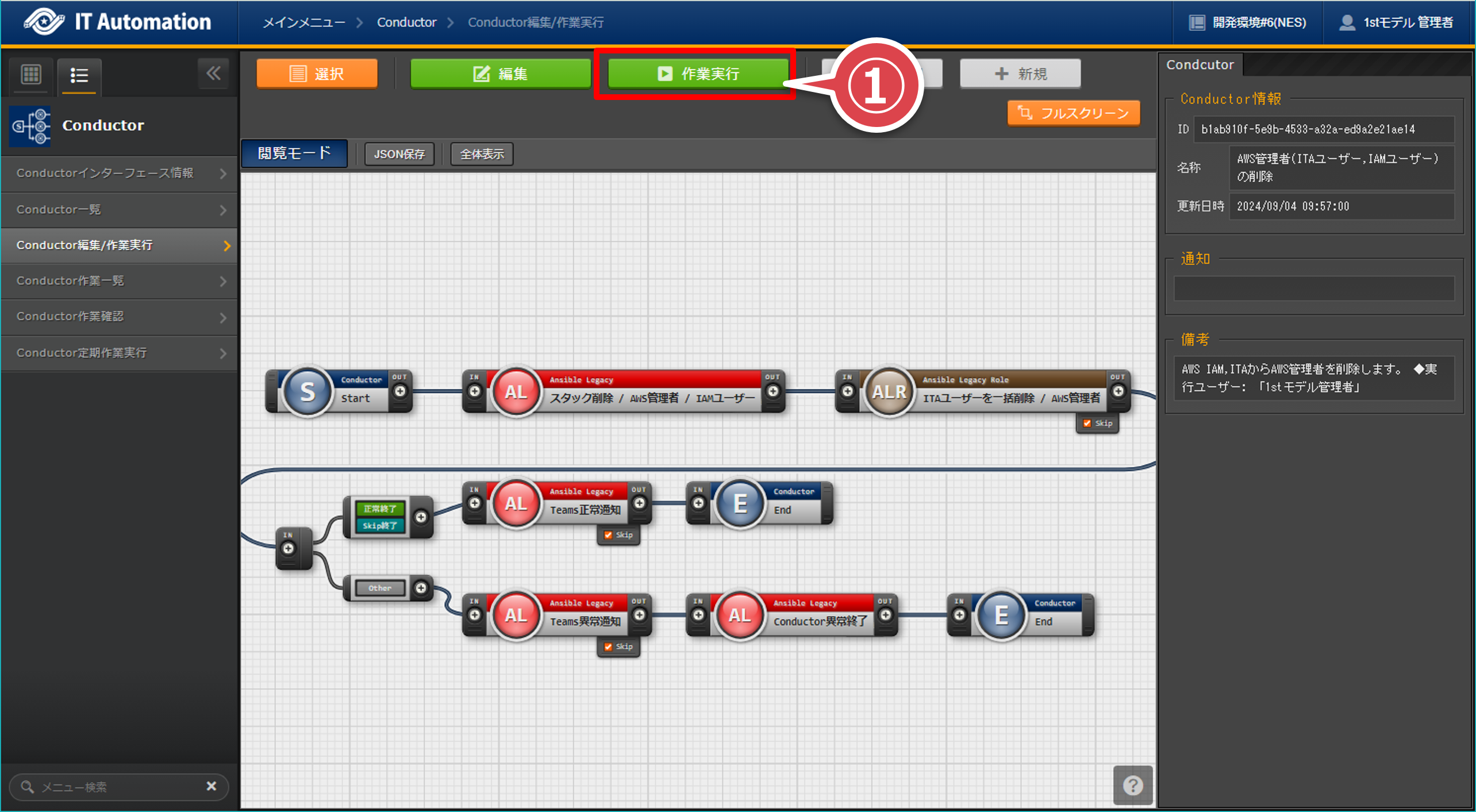 実行者:1stモデル管理者ユーザー名:ita-1st-adminパスワード:passwordメインメニューの「Conductor」アイコンを押下する