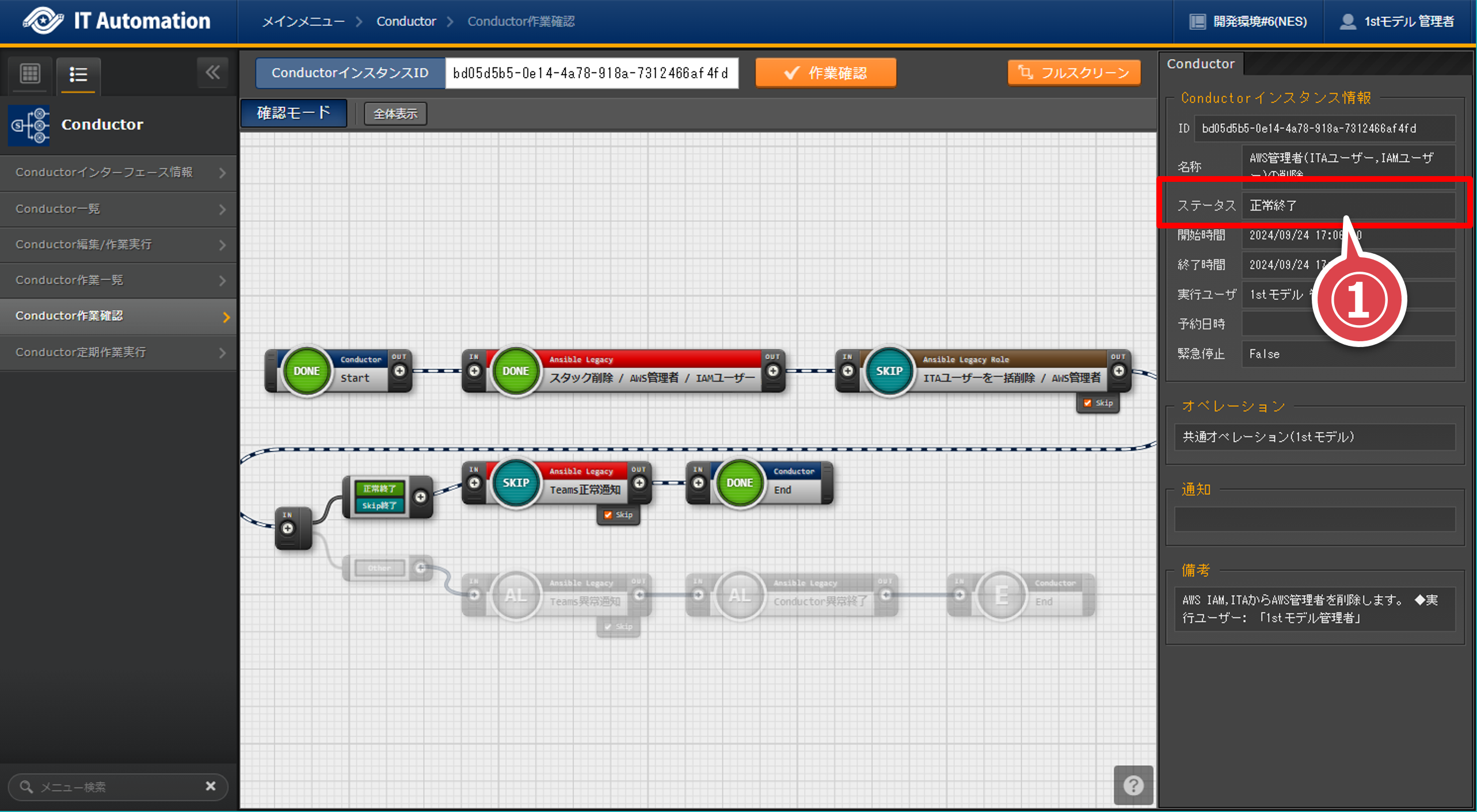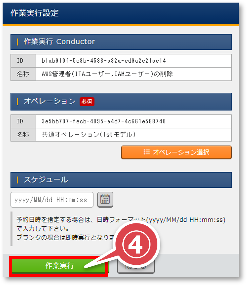 「Conductor編集/作業実行」画面の「作業実行」ボタンを押下する