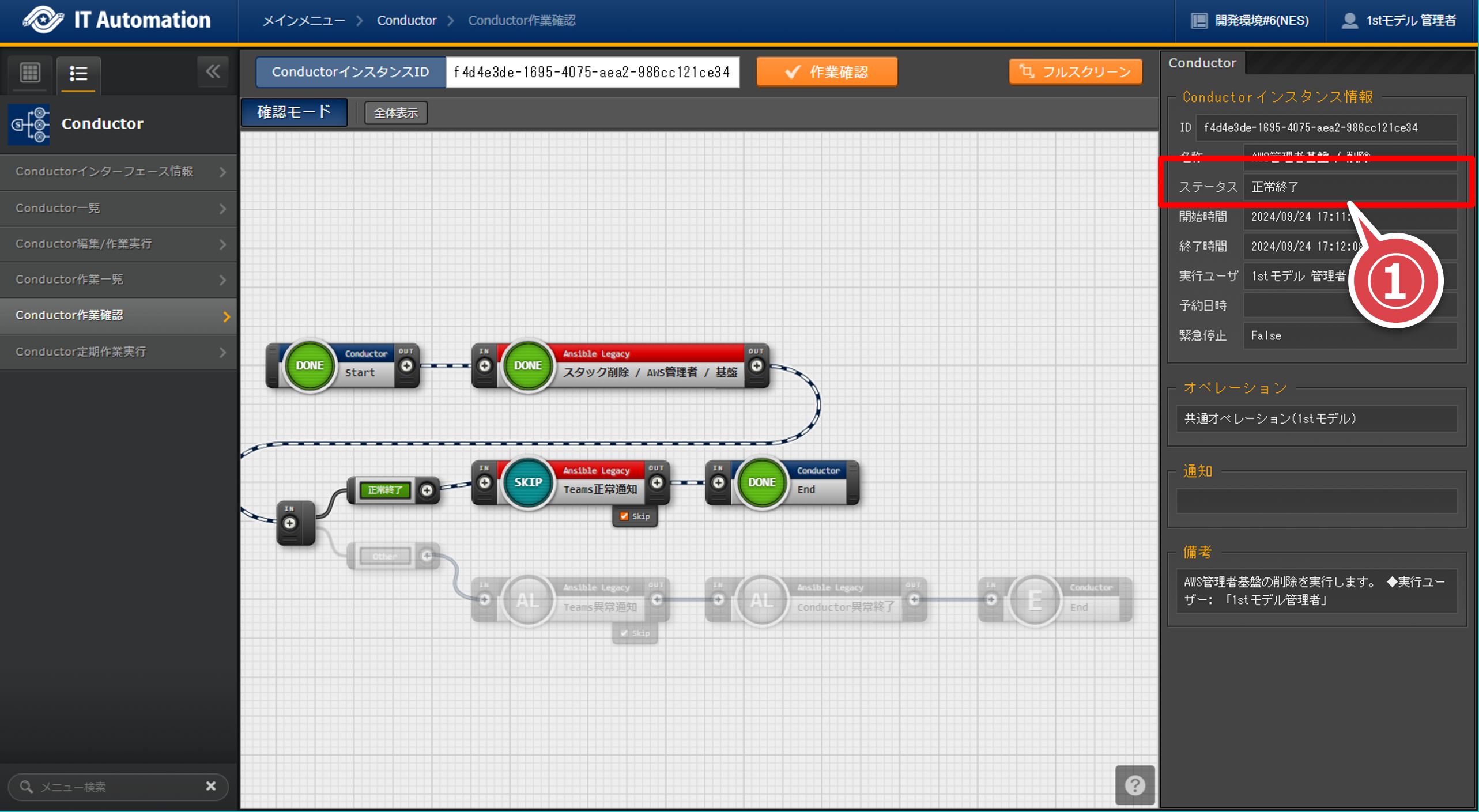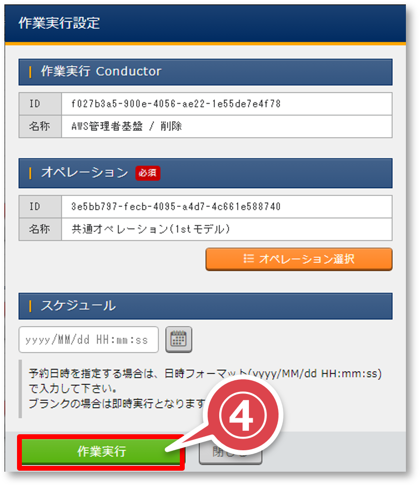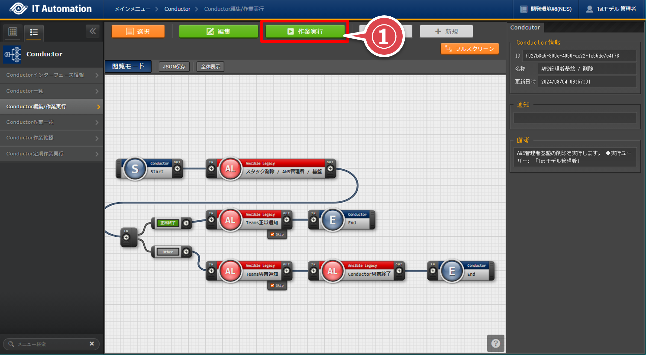 「Conductor編集/作業実行」画面の「作業実行」ボタンを押下する