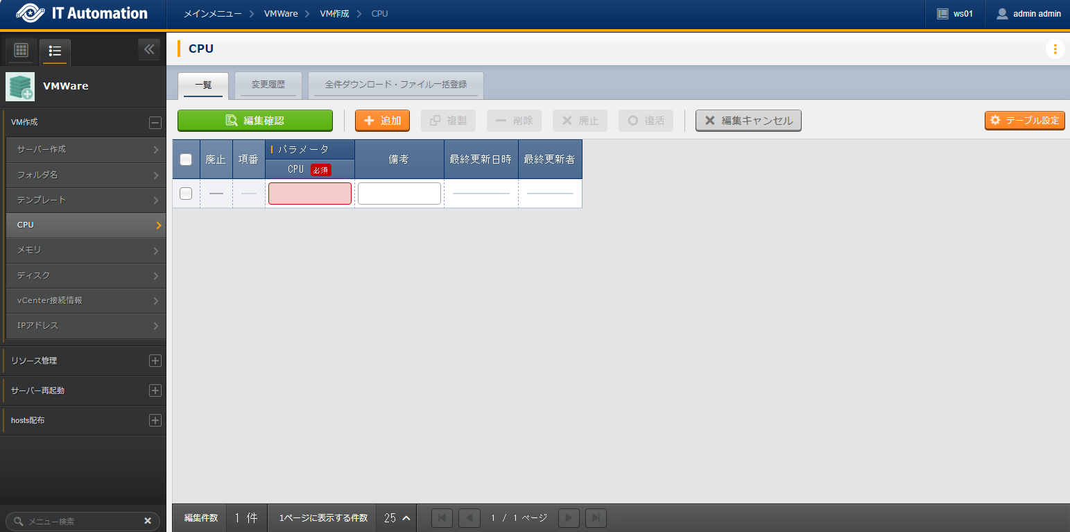 vCenter内に作成されるVMのCPU数を入力するためのメニュー項目です。
