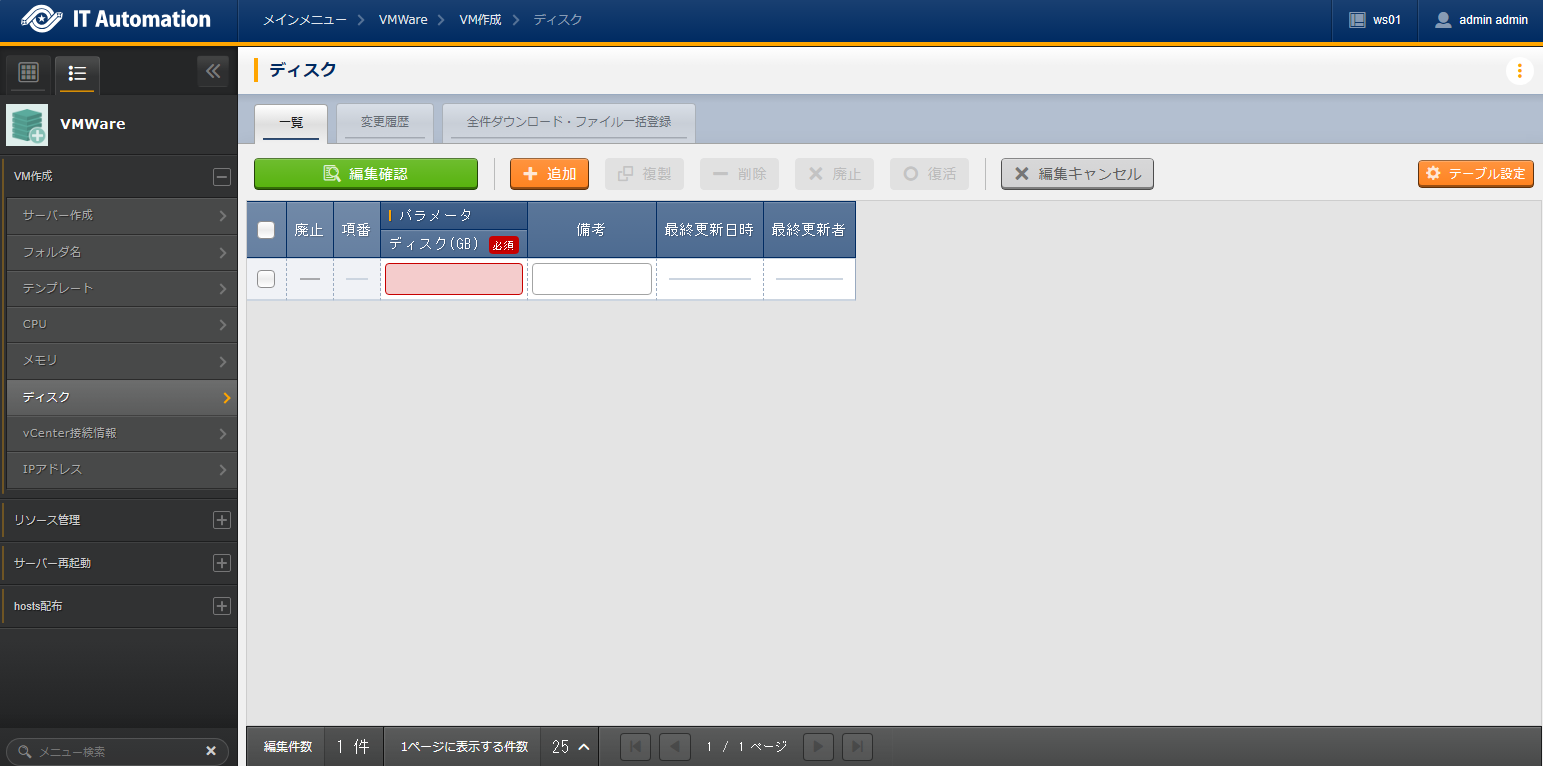 vCenter内に作成されるVMのディスク容量を入力するためのメニュー項目です。