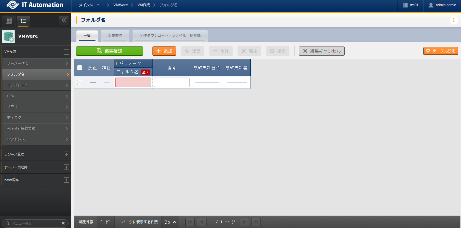 vCenter内に作成されるフォルダ名を入力するためのメニュー項目です。